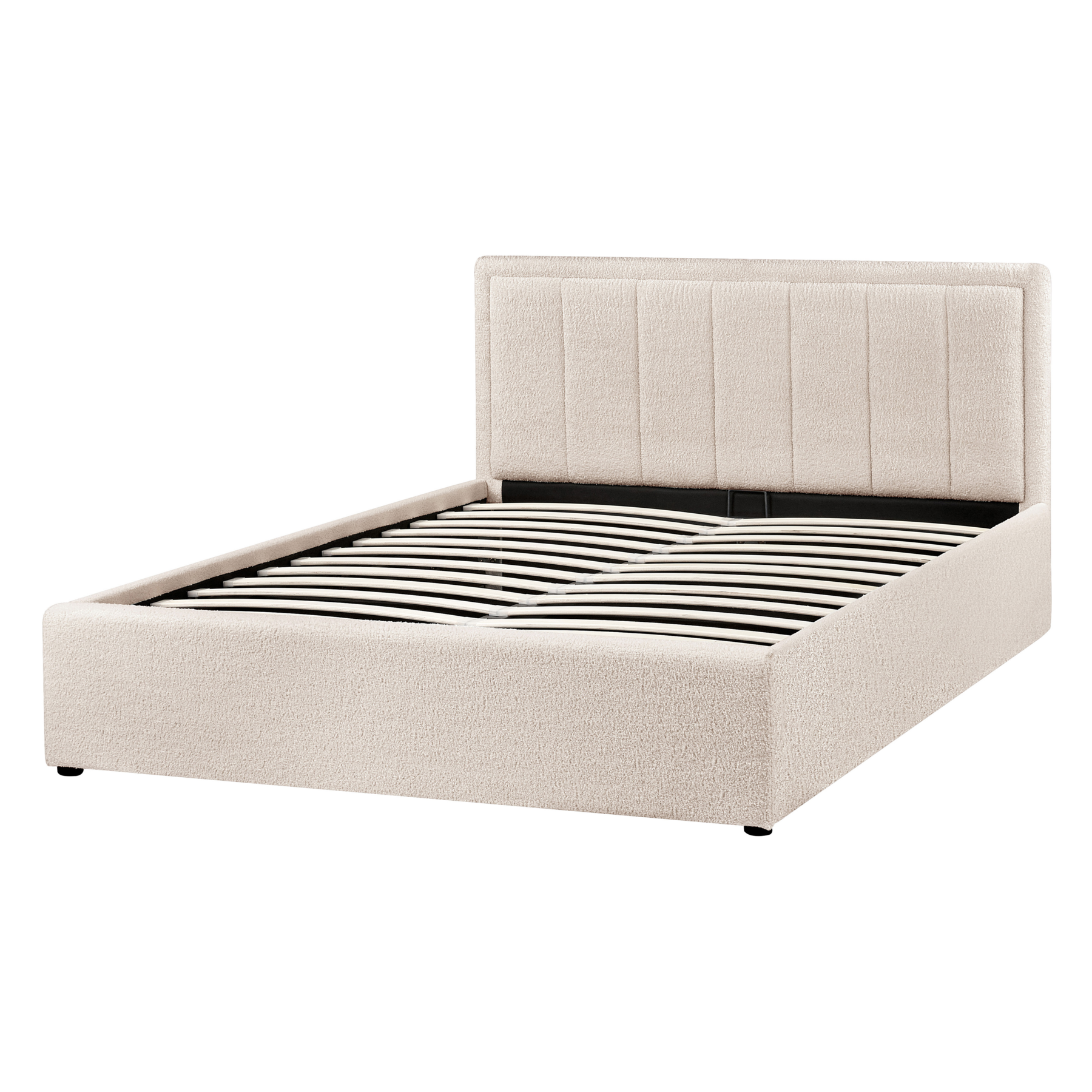 Beliani-MONTLAUR-Bed met opbergruimte-Beige-140 x 200 cm-Bouclé