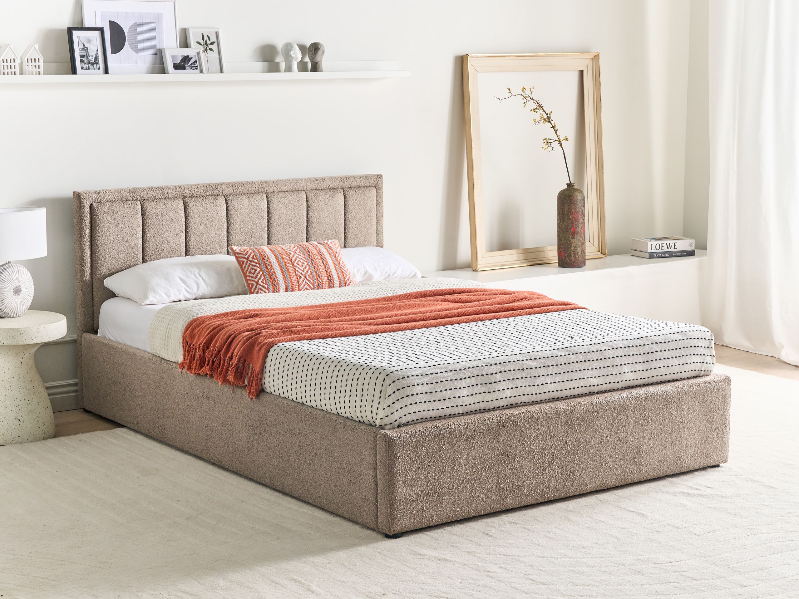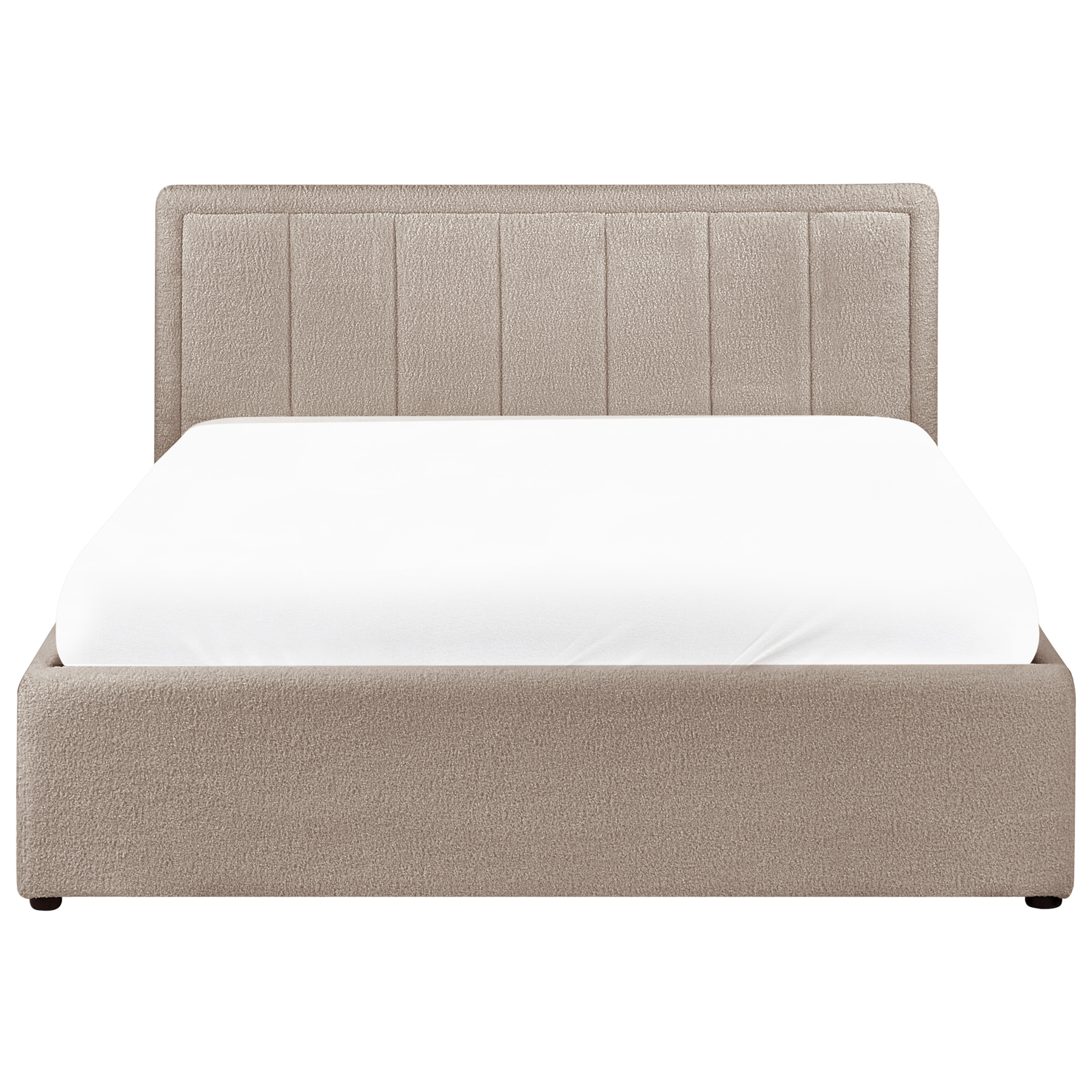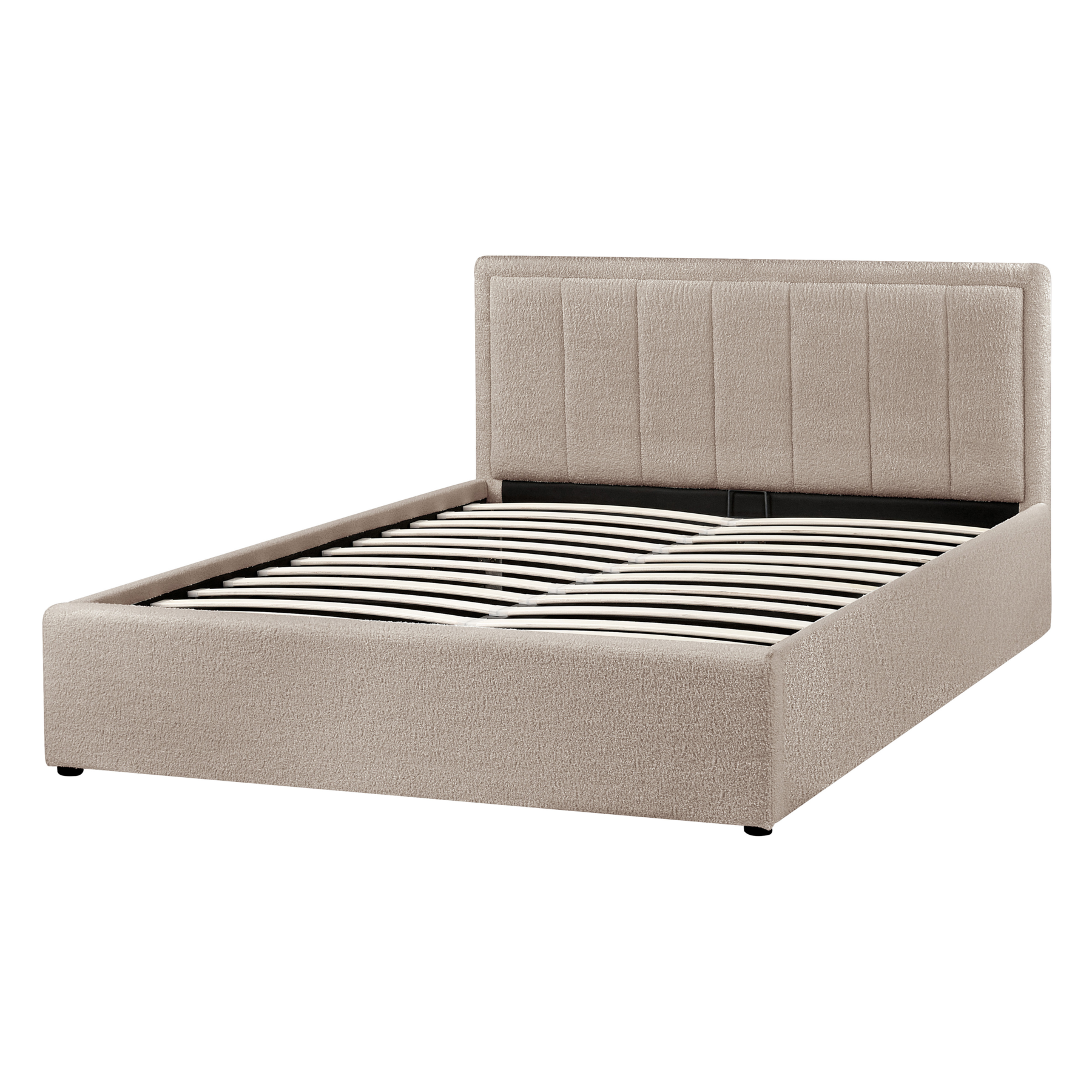 Beliani-MONTLAUR-Bed met opbergruimte-Taupe-140 x 200 cm-Bouclé