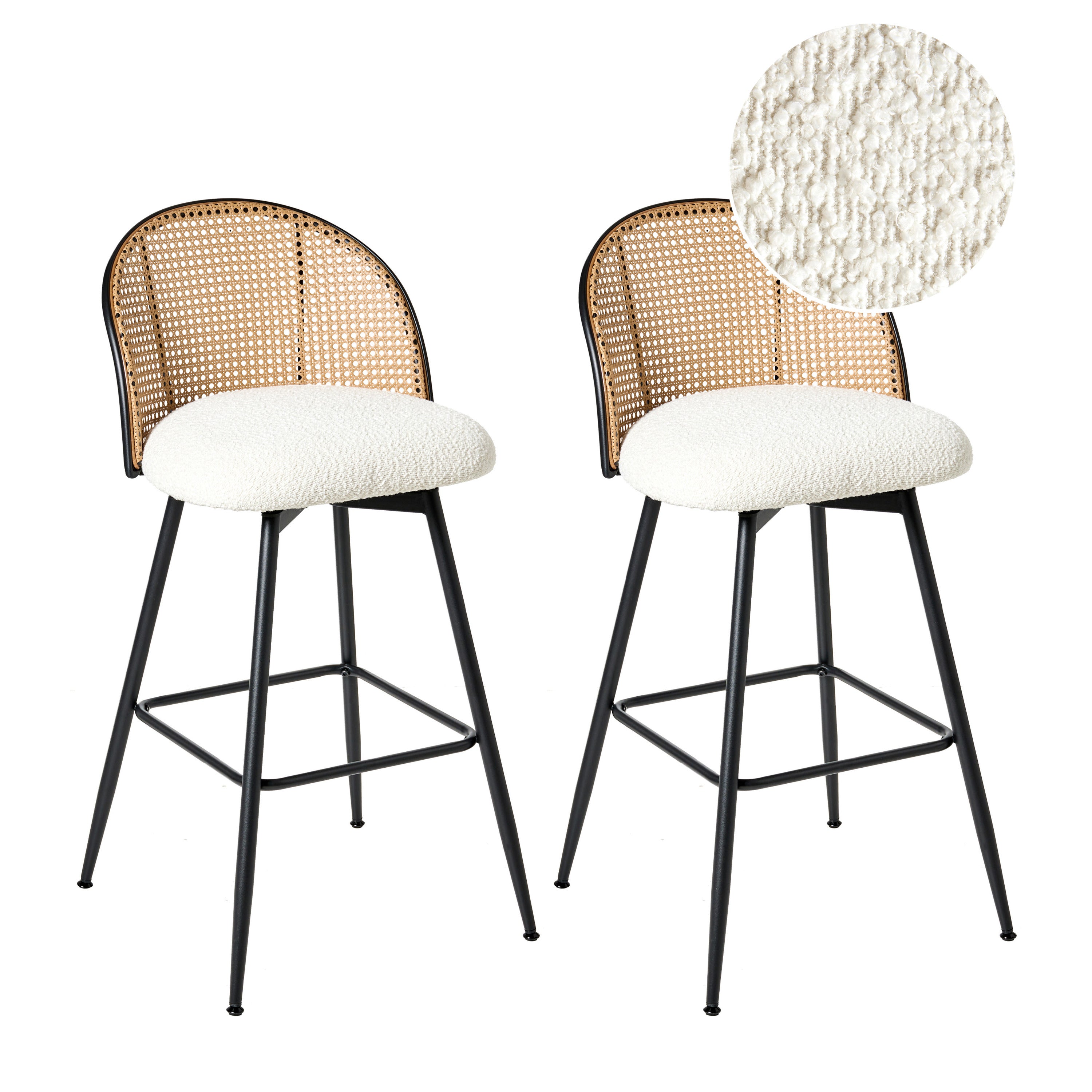 Beliani - NATHAN - Barkruk set van 2 - Off-white - 99 cm - Bouclé
