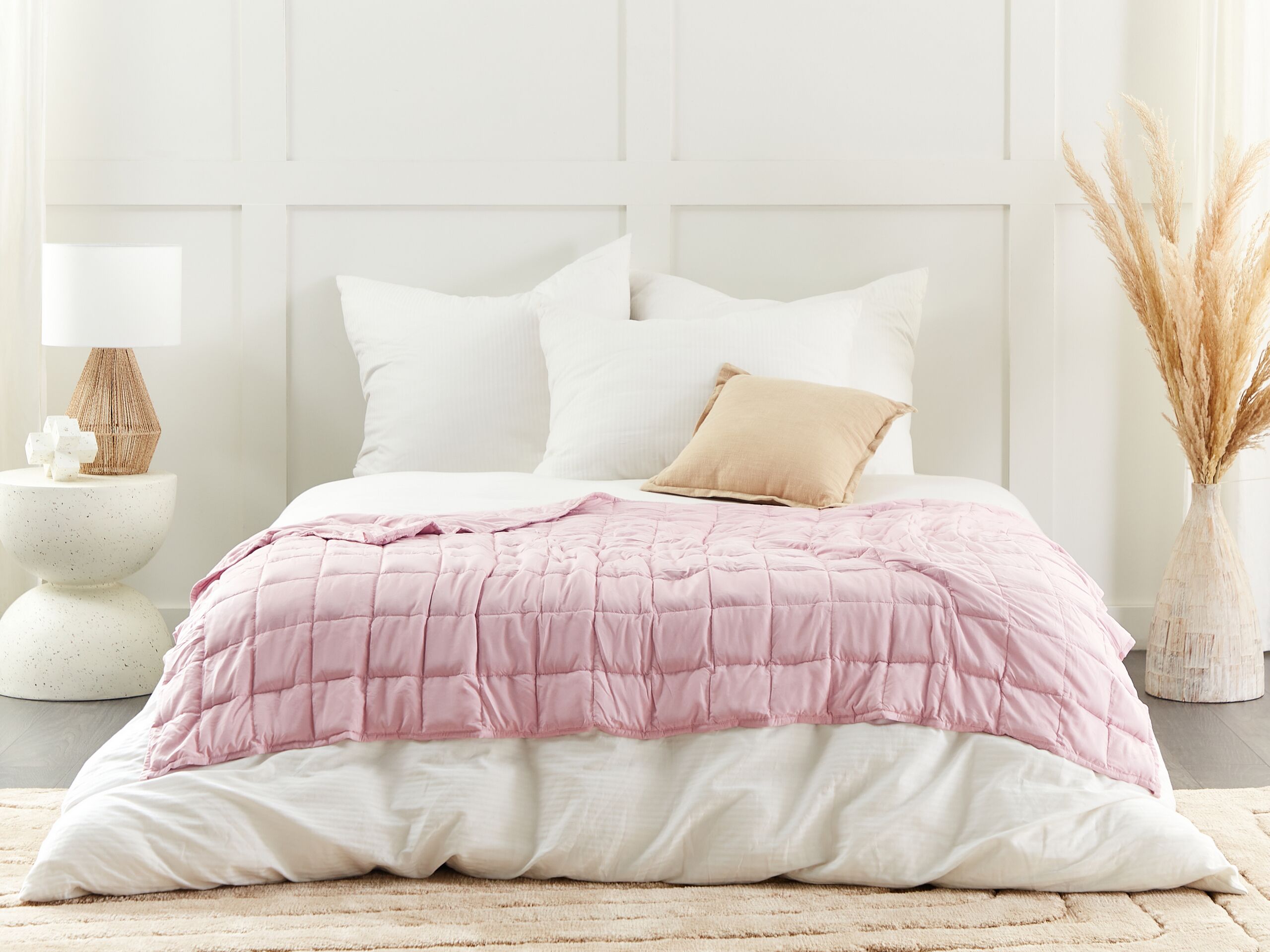 Beliani-NEREID-Verzwaringsdeken-Pastelroze-120 x 180 cm-Polyester