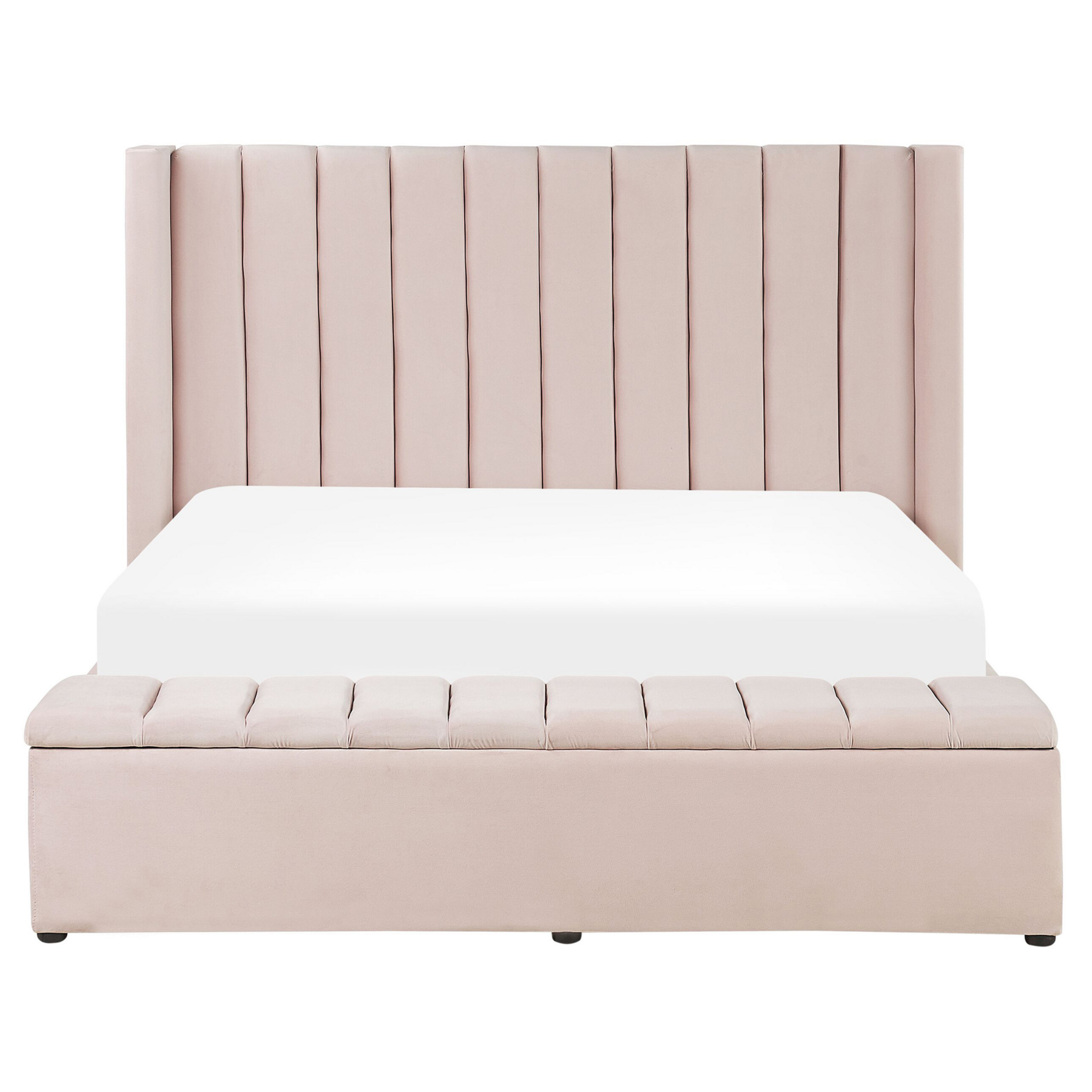 Beliani-NOYERS -Bed met opbergruimte-Roze-160 x 200 cm-Fluweel