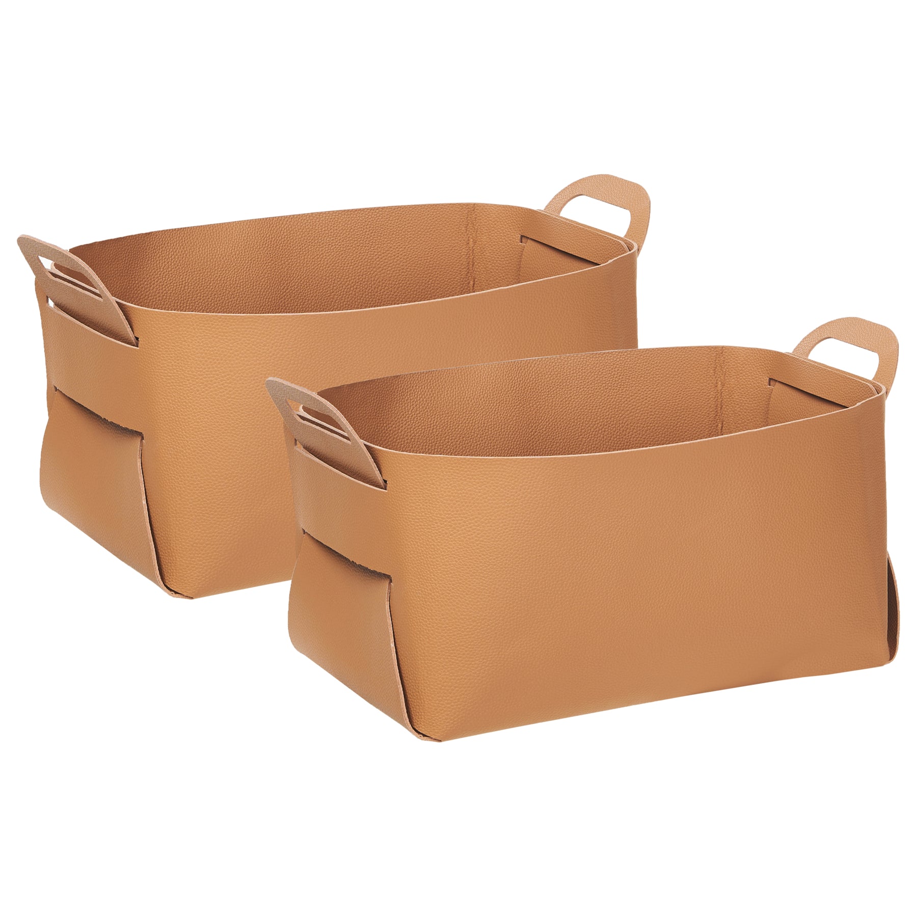 Beliani - NUZI - Opbergmanden set van 2 - Goudbruin - Kunstleer