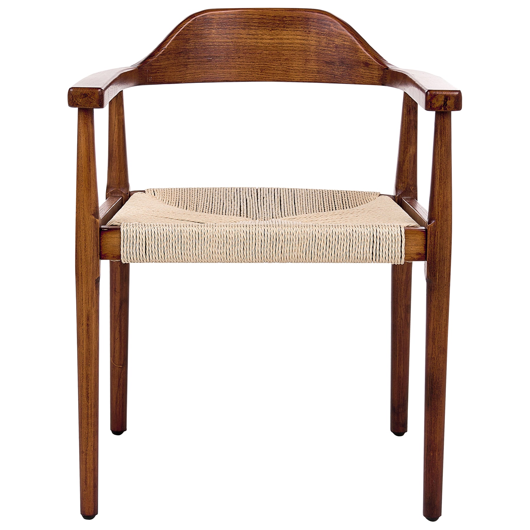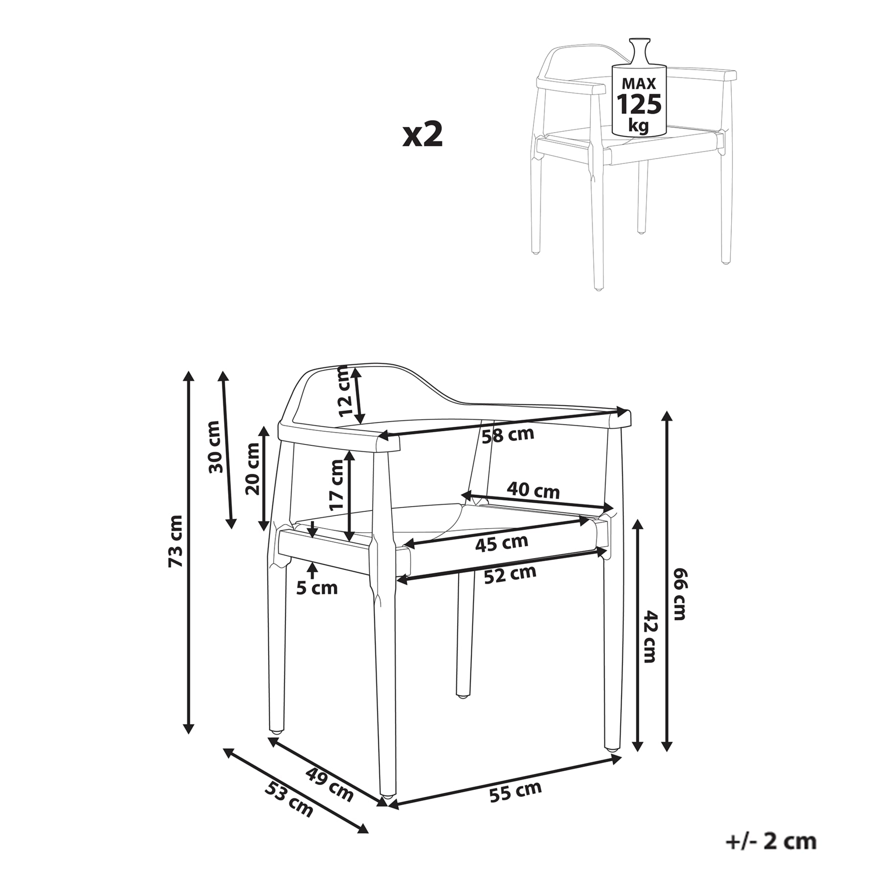 Beliani-OAKDALE-Eetkamerstoel set van 2-Donkerbruin|Beige-Rubberhout