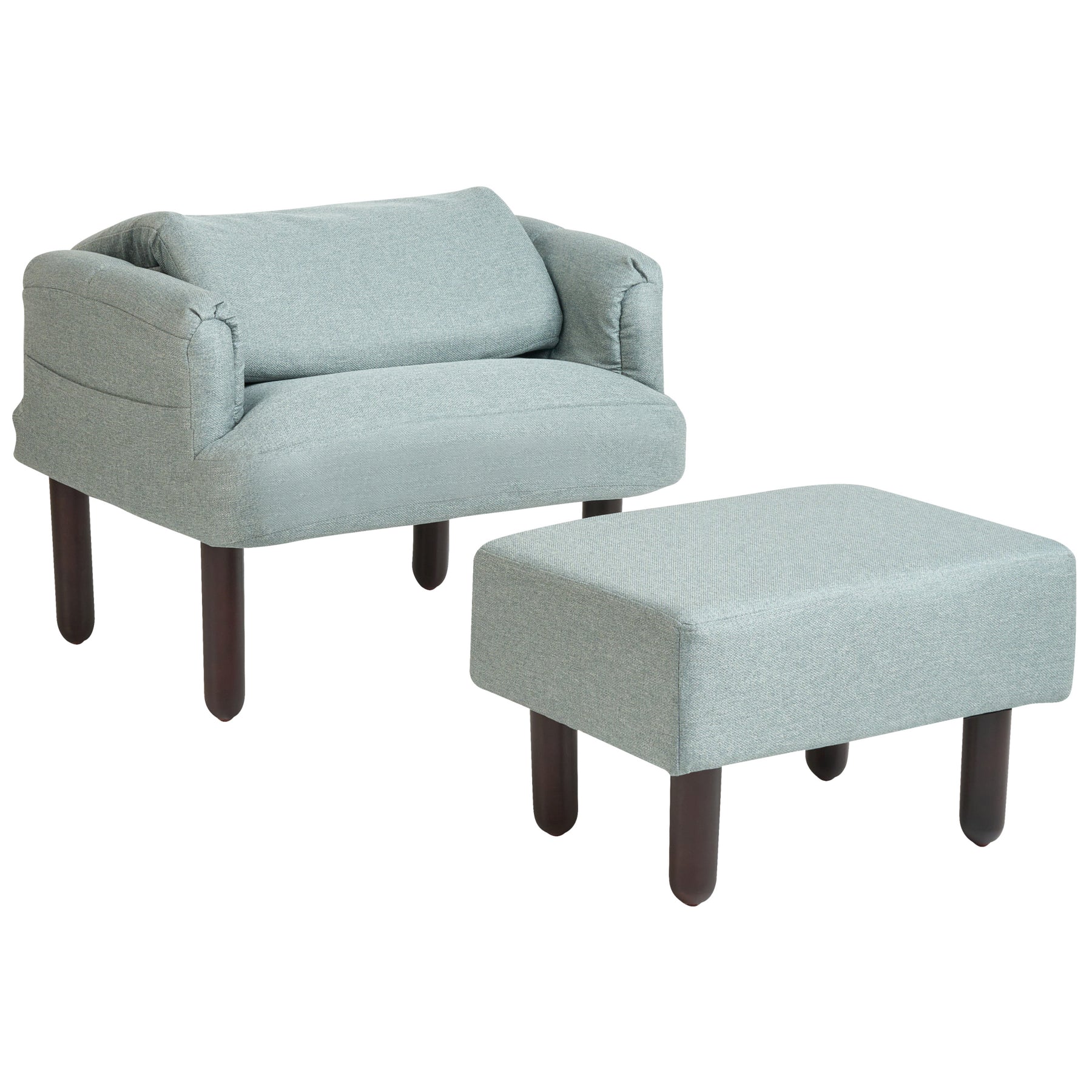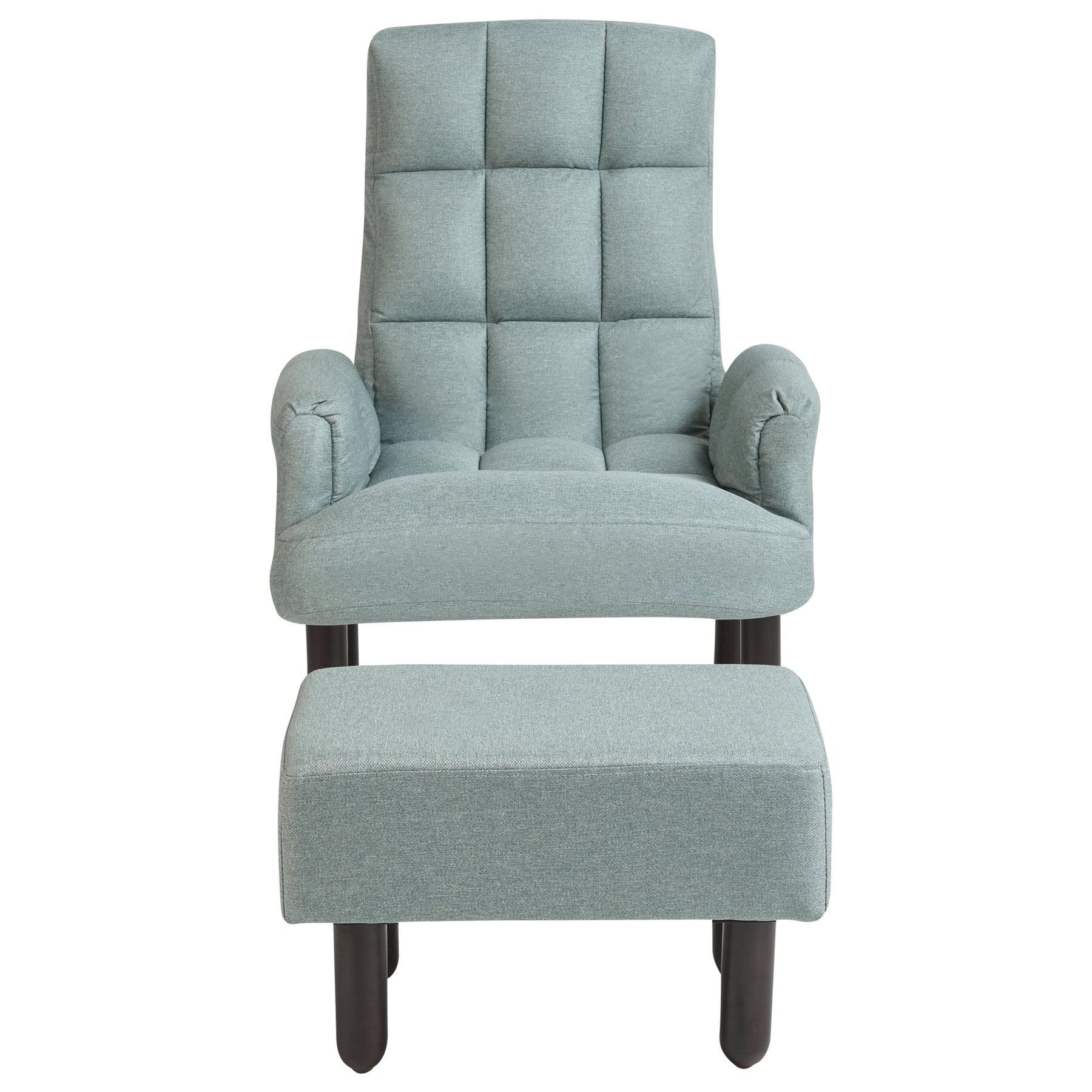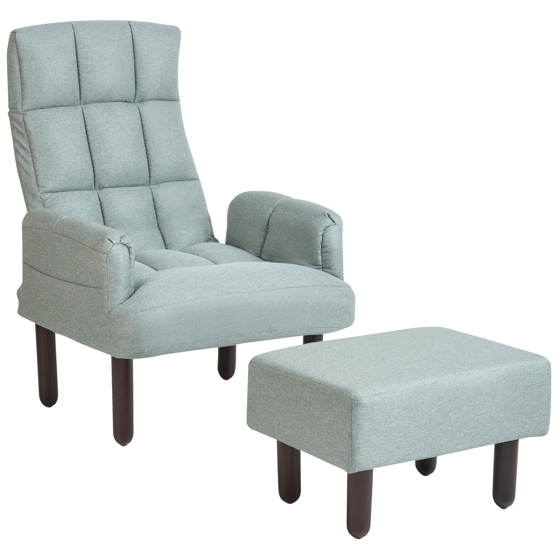 Beliani - OLAND - Fauteuil met hocker - Mintgroen - Linnen