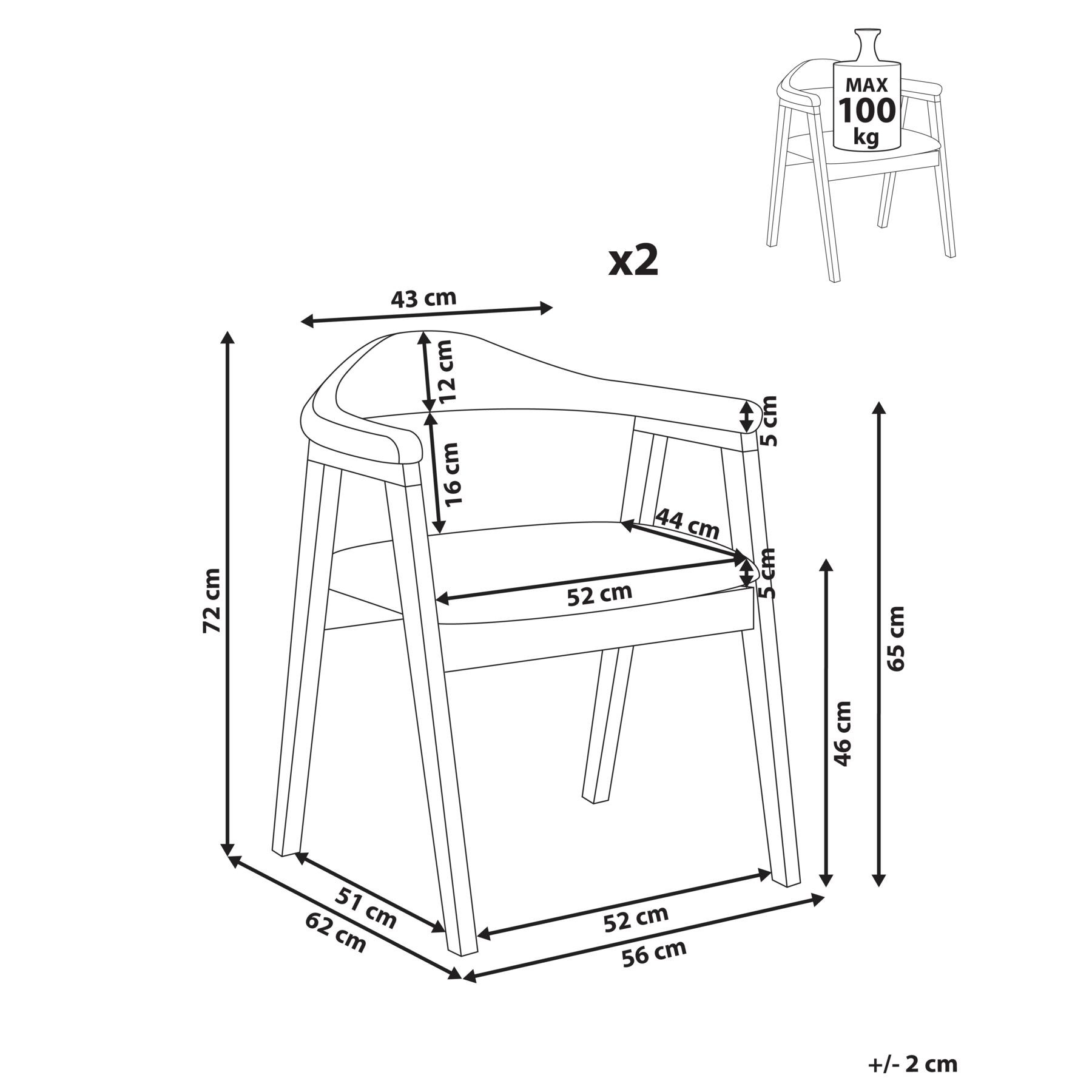 Beliani - ONECO - Eetkamerstoel set van 2 - Donkerbruin - Rubberhout