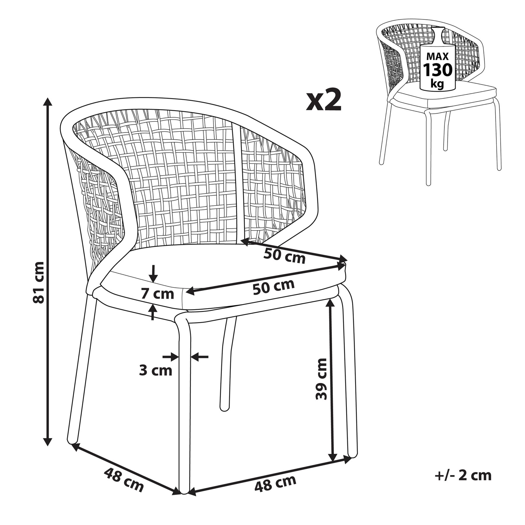 | Maximale draagkracht | 130 kg |