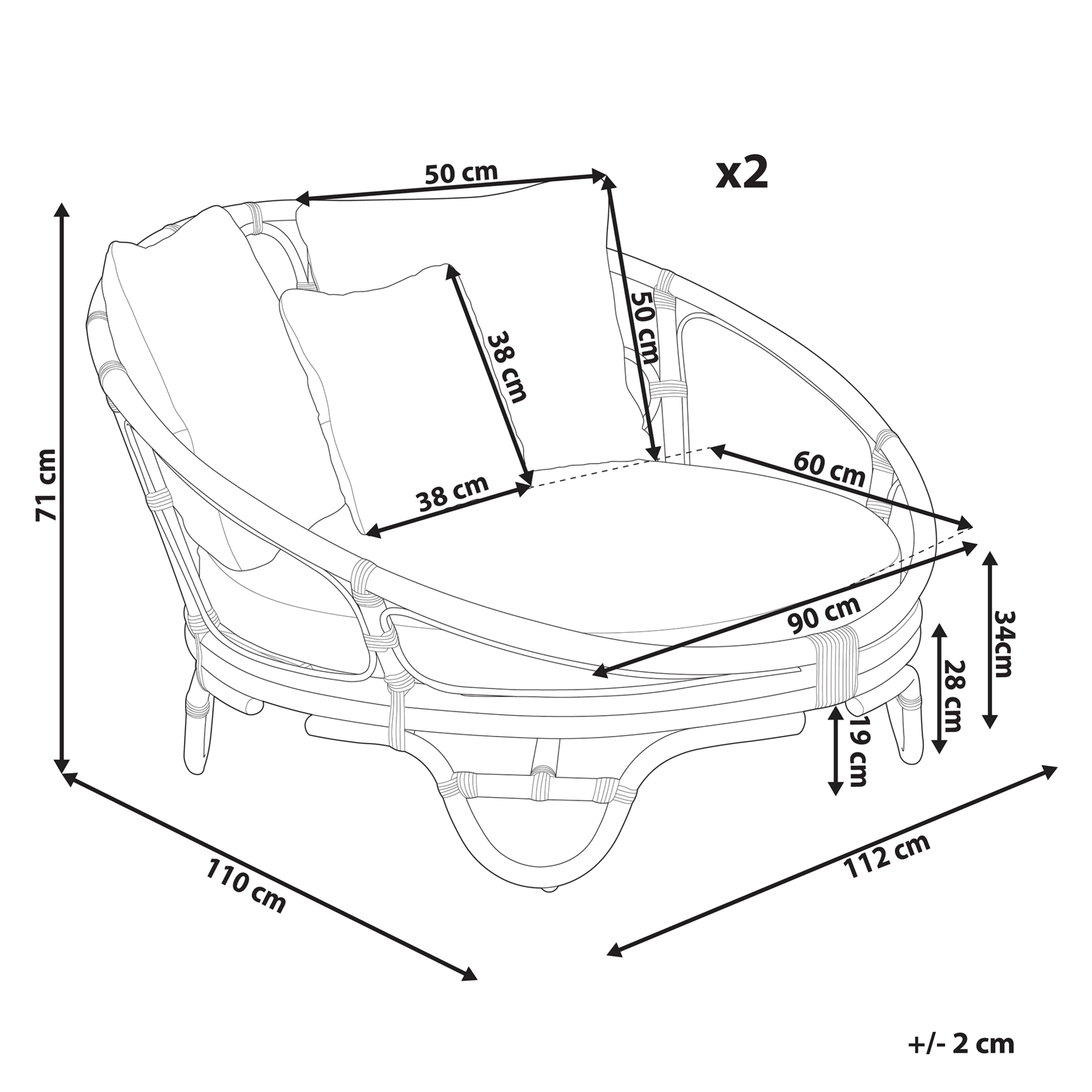 | Zitdiepte | 90 cm |