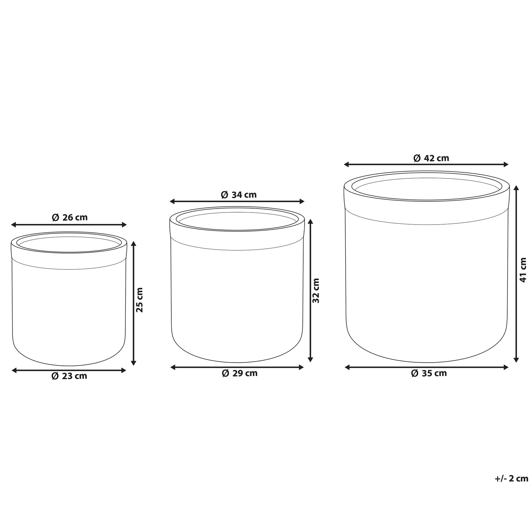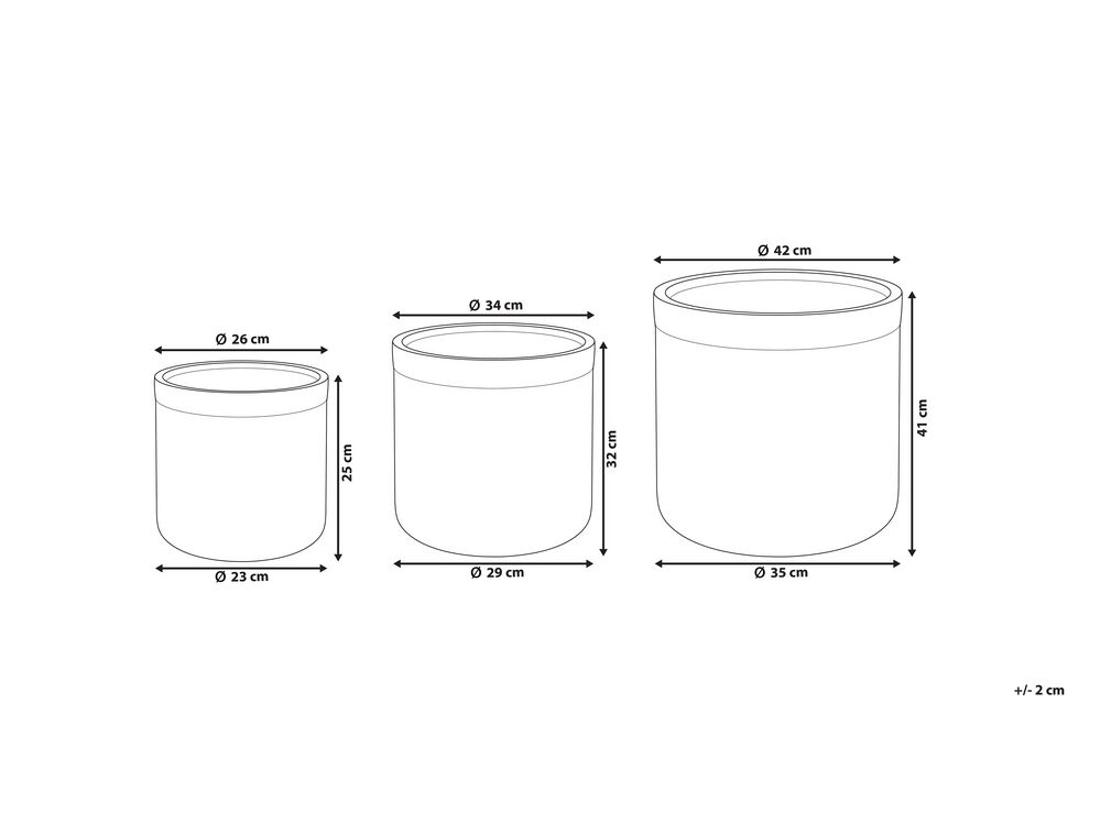 Ronde plantenbakken in zwart, set van 3. Minimalistisch ontwerp in de mooiste vorm! Zet prachtige accenten op het terras, balkon of in de tuin met deze moderne ronde bloempotten in zwart. De plantenbakken in drie verschillende maten zijn flexibel voor gebruik binnenshuis en voor gebruik buitenshuis. De bloempotten hebben een kleine, geprefabriceerde opening in de bodem, zodat overtollig gietwater op elk moment kan weglopen. Het materiaal is robuust, resistent, UV-bestendig, gemakkelijk in onderhoud en weerbestendig, zelfs bij zeer hoge of zeer lage temperaturen. Details: Producttype: plantenbak voor buiten Stijl: Modern Kleur: Zwart Kap: Paars Soort materiaal: Keramiek Hoofdmateriaal: Klei-vezelmengsel Overig materiaal: Glasvezel Vorm: Rond Afvoergaten: Ja Insert noodzakelijk: Ja Max. temperatuur: 40 Min. temperatuur: -20 Afmetingen: Diepte: 26/34/42 cm Breedte: 26/34/42 cm Hoogte: 25/32/41 cm Gewicht: 14 kg Aanbod omvat: 3 x Bloempot Belangrijkste eigenschappen: Met voor draingaten, Hoogwaardige kwaliteitsmaterialen, UV-bestendigheidsklasse, Geschikt voor binnen- en buitengebruik, Bestand tegen lage en hoge temperaturen Montageinformatie: Geen montage benodigd Extra informatie: In de bodem van de bloembak bevindt zich een afvoergat. Bij gebruik binnenshuis moet een onderzetter/opvangbak worden gebruikt. Houd er rekening mee, dat elk model er anders uit kan zien dan op de afbeelding. Het arrangement van kleuren en stukken stof kunnen verschillend zijn en dit is geen defect, maar een eigenschap Tekst weerstand: Dit product is waterbestendig: het zal geen beschadigingen oplopen bij blootstelling aan regen of contact met andere vloeistoffen. Je kunt dit product buitenshuis gebruiken. Ook tijdens regen of hoge luchtvochtigheid. Weerstand: Waterbestendig Onderhoudstips: Klei-vezelmengsel: 1.Geschikt voor binnen en buiten gebruik. Geen extra reiniging nodig. Maak wel buiten het seizoen gebruik van een beschermhoes, of bewaar ze op een koele, droge plek.