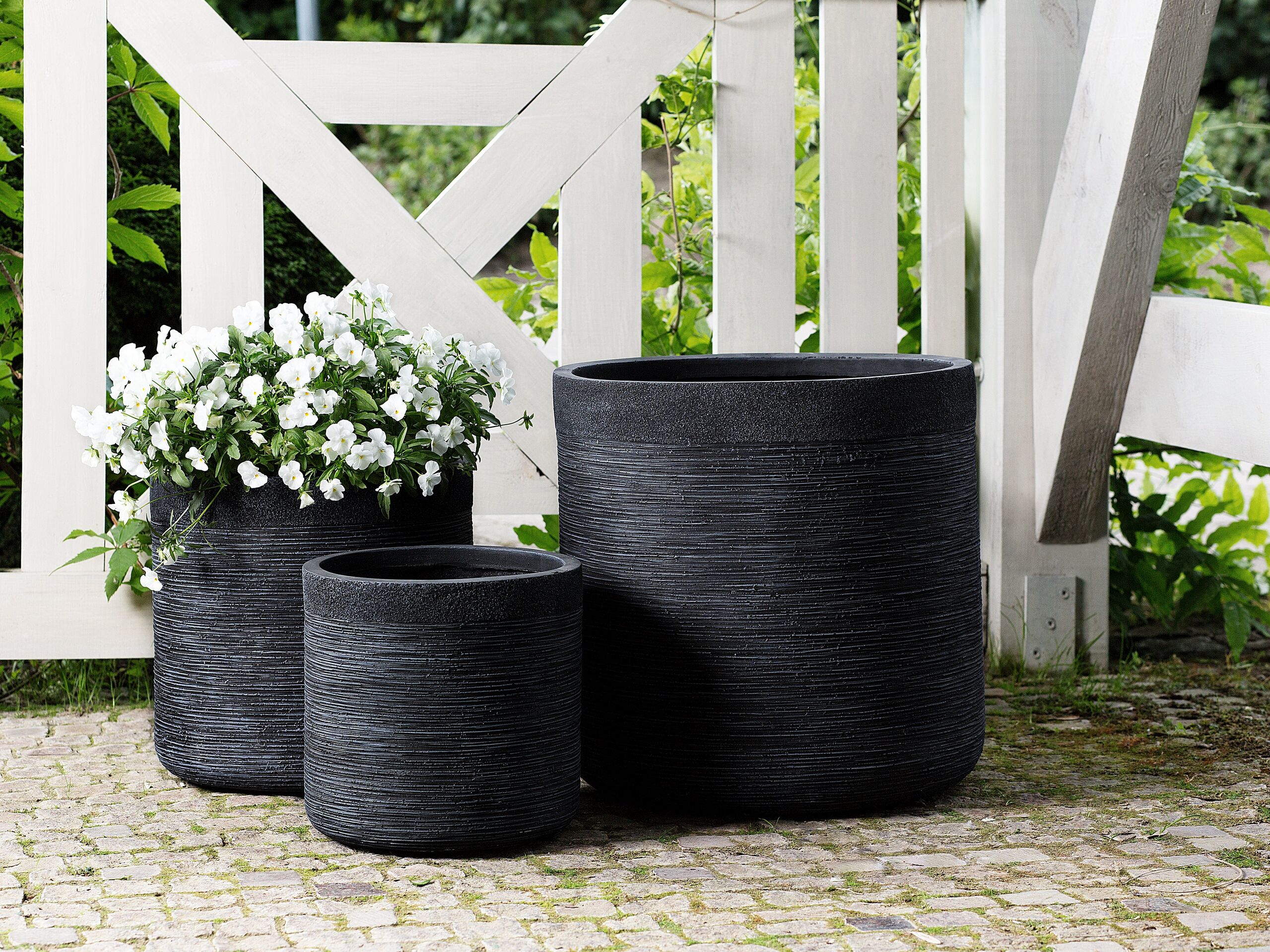 Minimalistisch ontwerp in de mooiste vorm! Zet prachtige accenten op het terras, balkon of in de tuin met deze moderne ronde bloempotten in zwart. De plantenbakken in drie verschillende maten zijn flexibel voor gebruik binnenshuis en voor gebruik bu