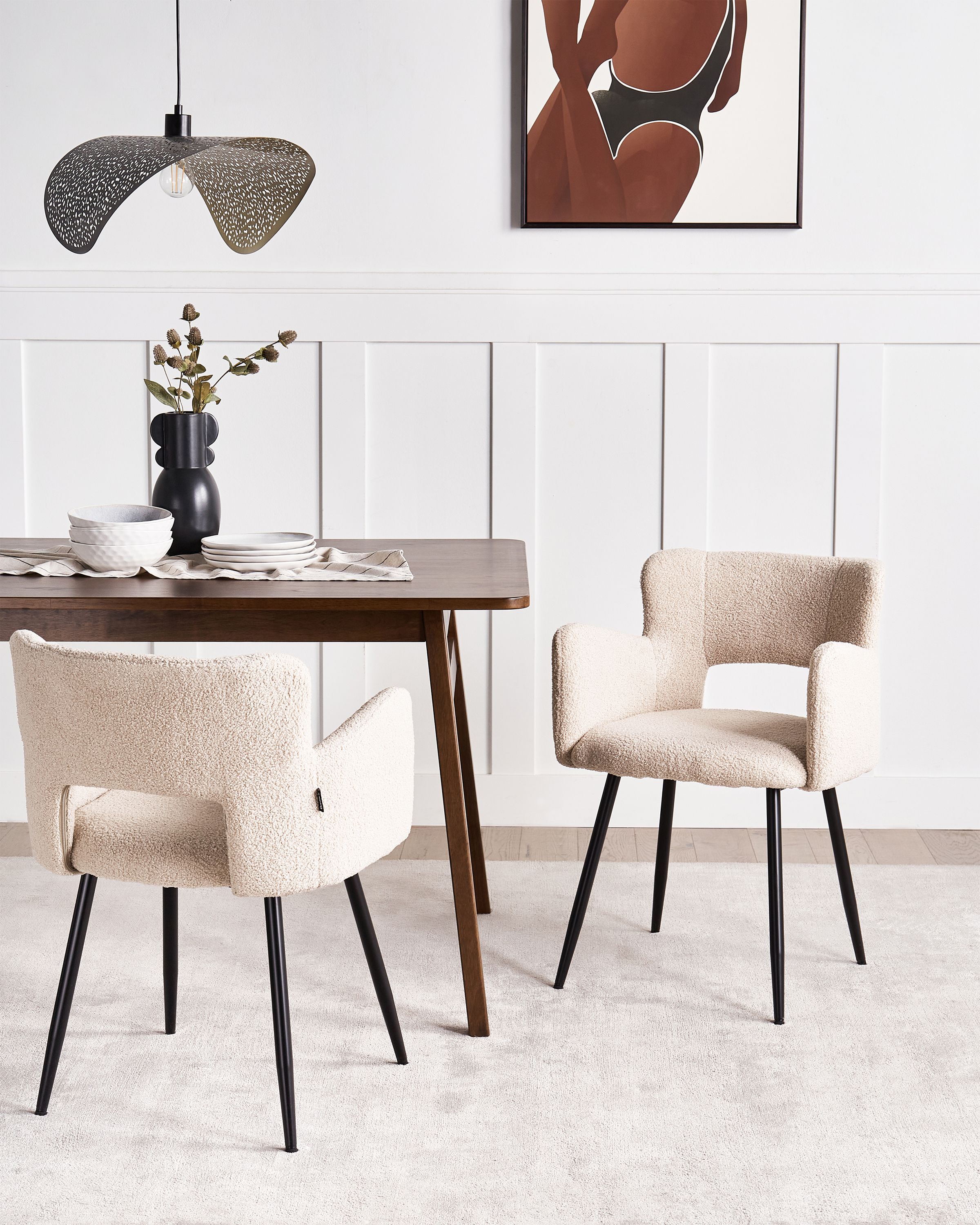 Beliani - SANILAC - Eetkamerstoel set van 2 - Beige - Bouclé