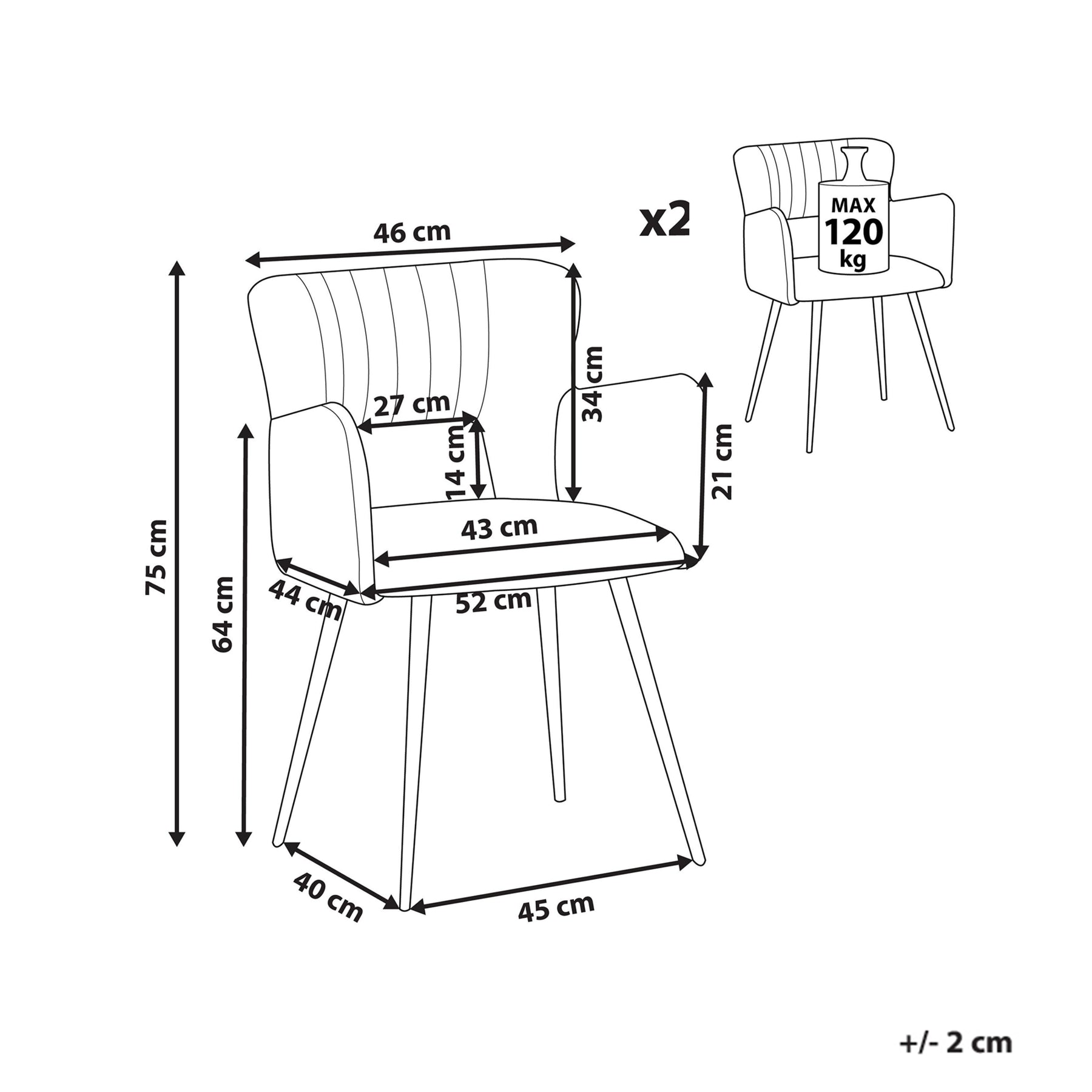 Beliani - SANILAC - Eetkamerstoel set van 2 - Lichtblauw - Fluweel