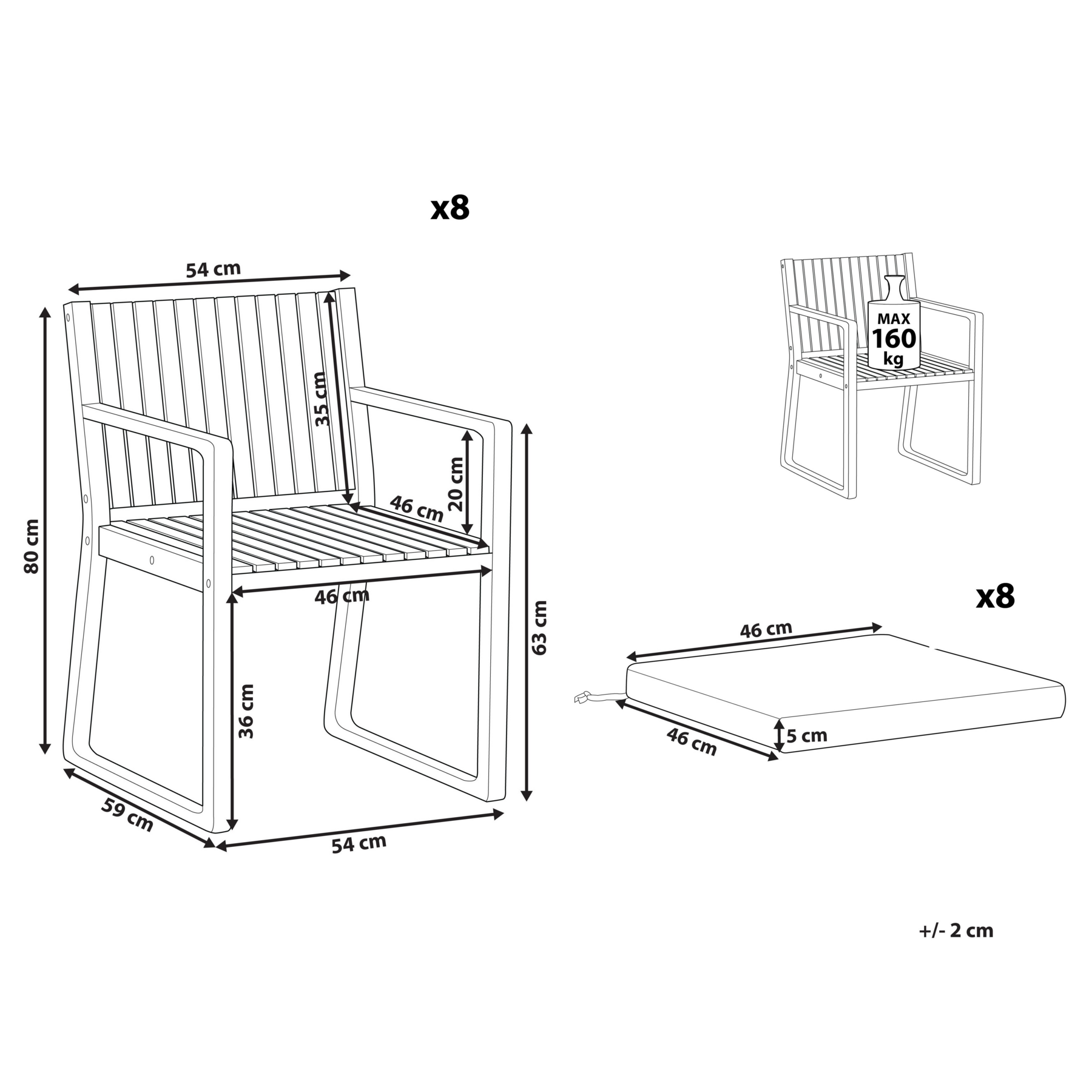 Beliani-SASSARI -Tuinstoel set van 8-Donkerhout|Blauw|Wit-Acaciahout