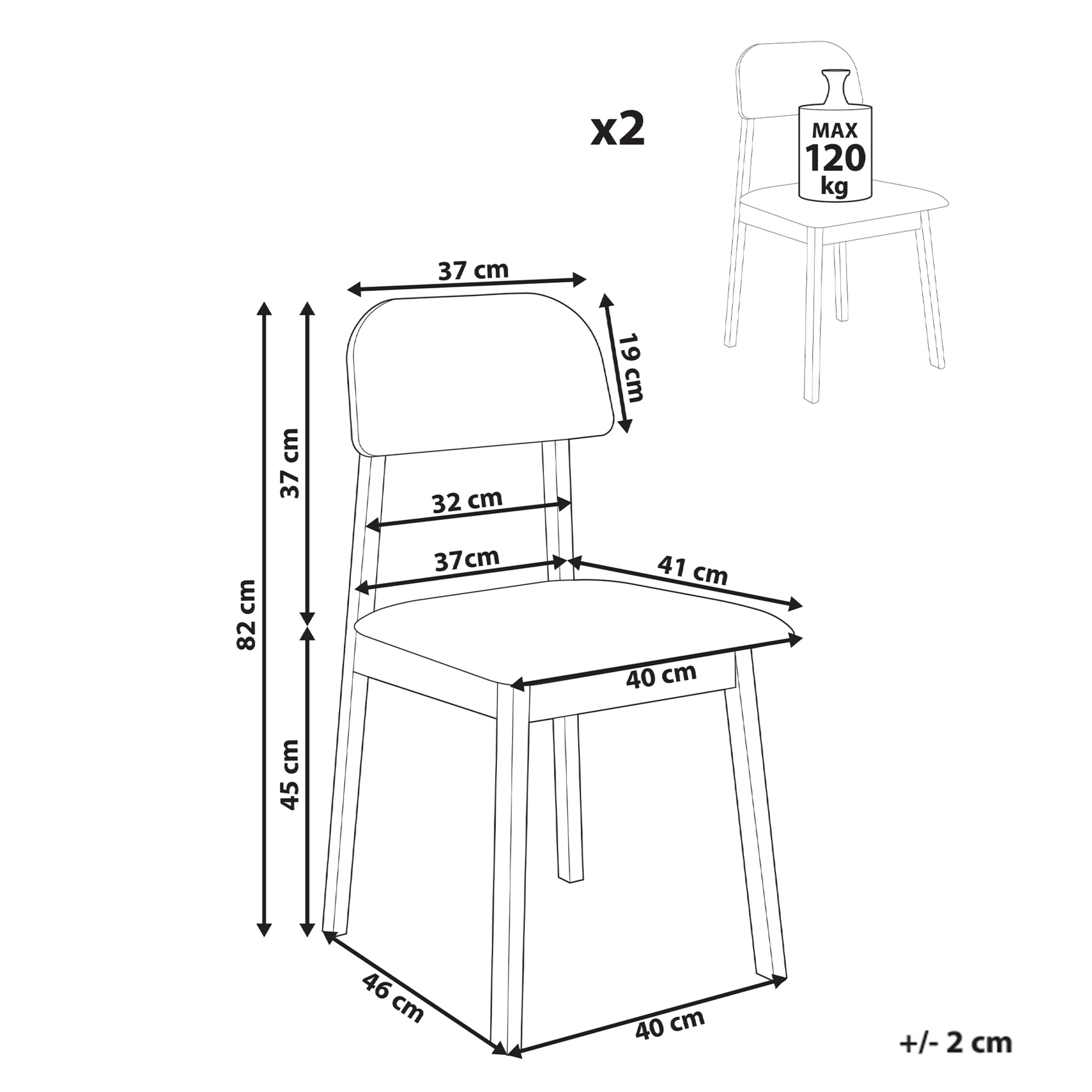 | Maximale draagkracht | 120 kg |