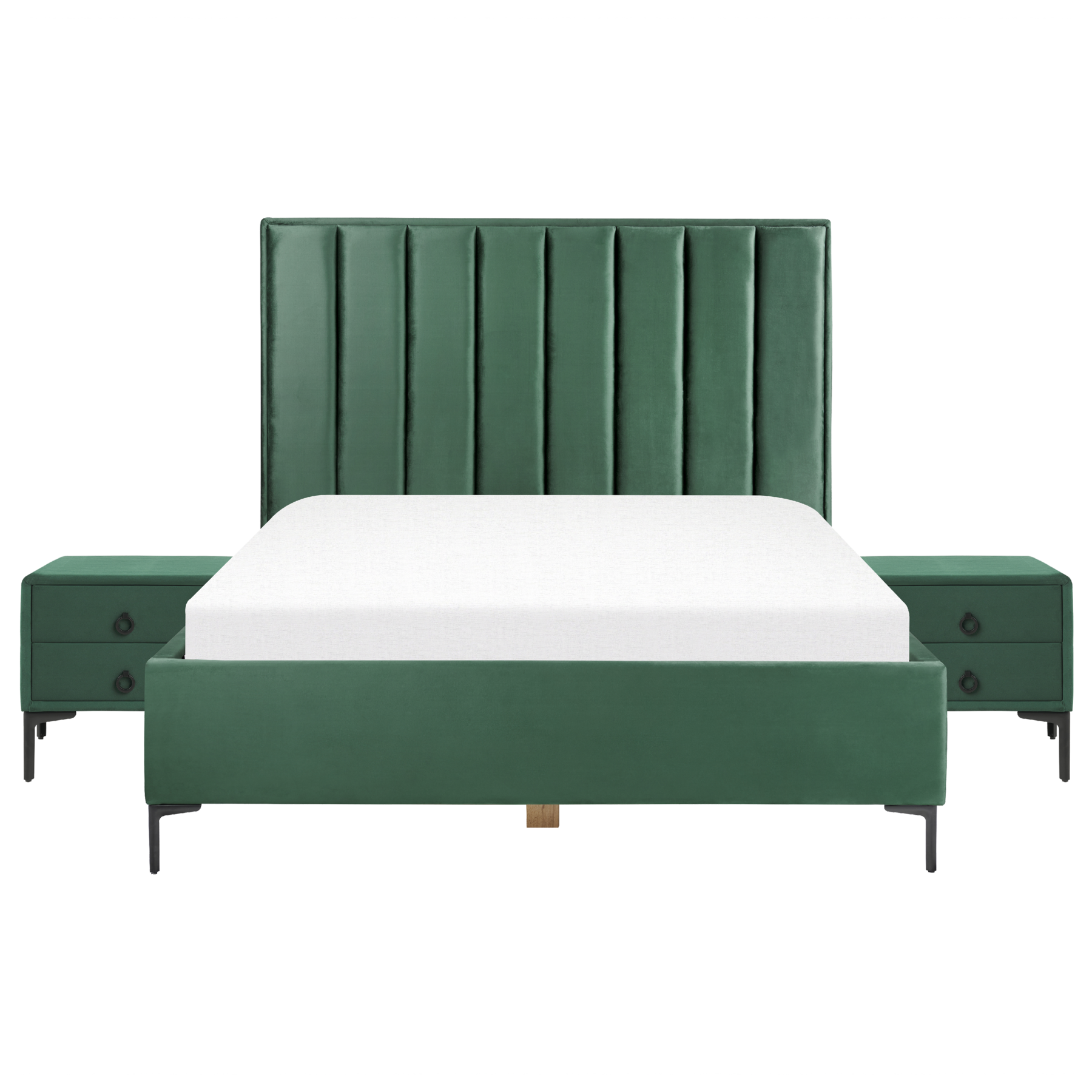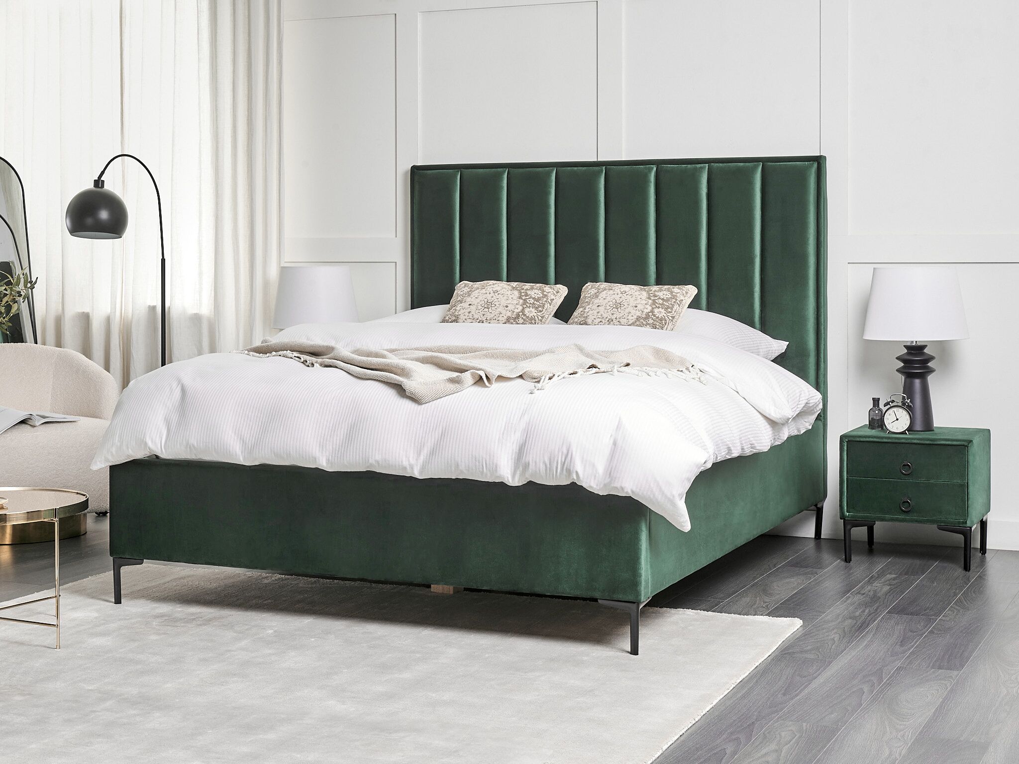 Beliani-SEZANNE -Slaapkamerset-Donkergroen-160 x 200 cm-Fluweel