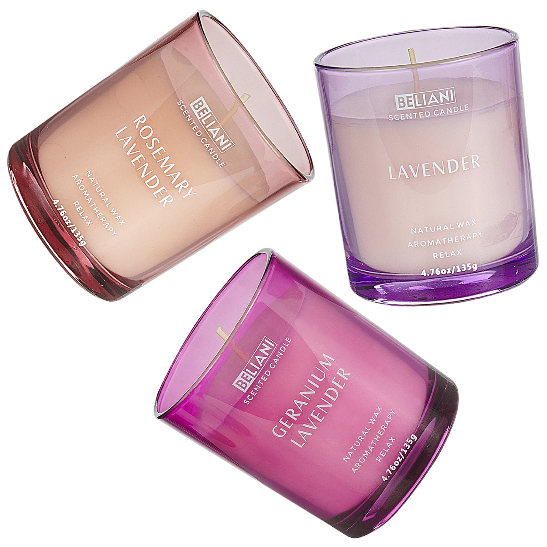 Beliani-SHEER JOY-Geurkaars set-lavendel|rozemarijn|geranium-Soja wax