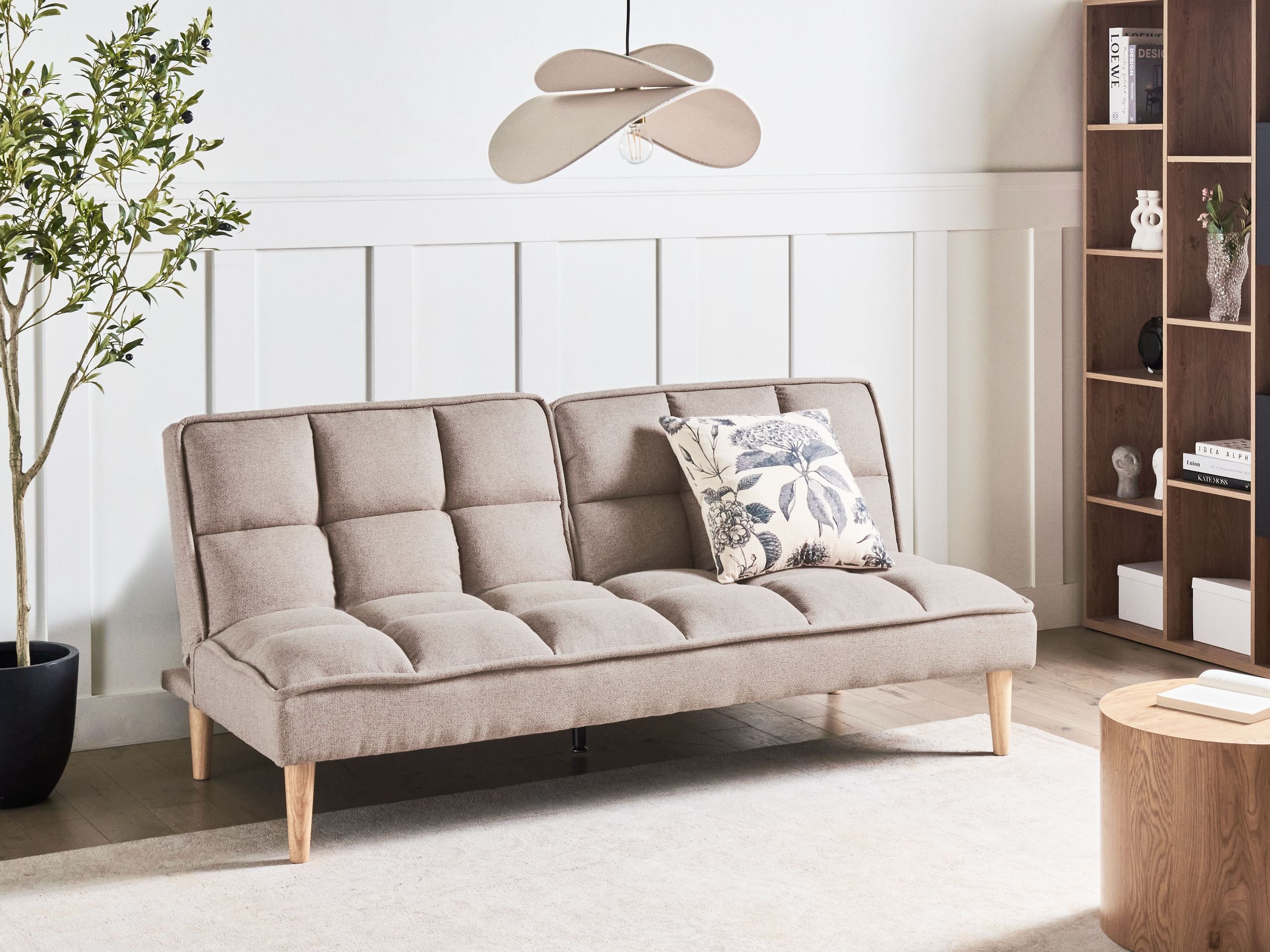 Beliani - SILJAN - Slaapbank 3-zits - Lichtbruin - Polyester