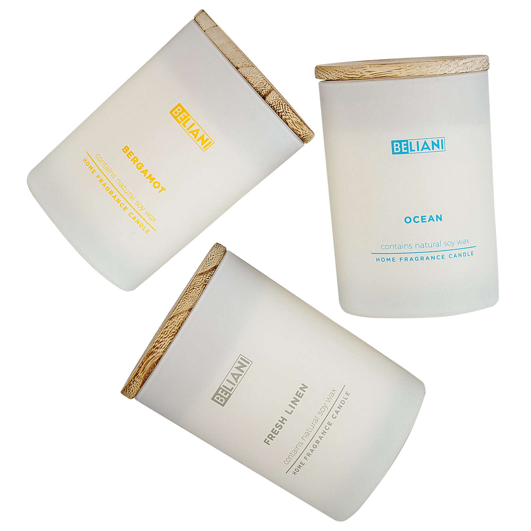 Beliani-SIMPLICITY-Geurkaars set-Oceaan|Bergamot|Fresh linnen-Soja wax