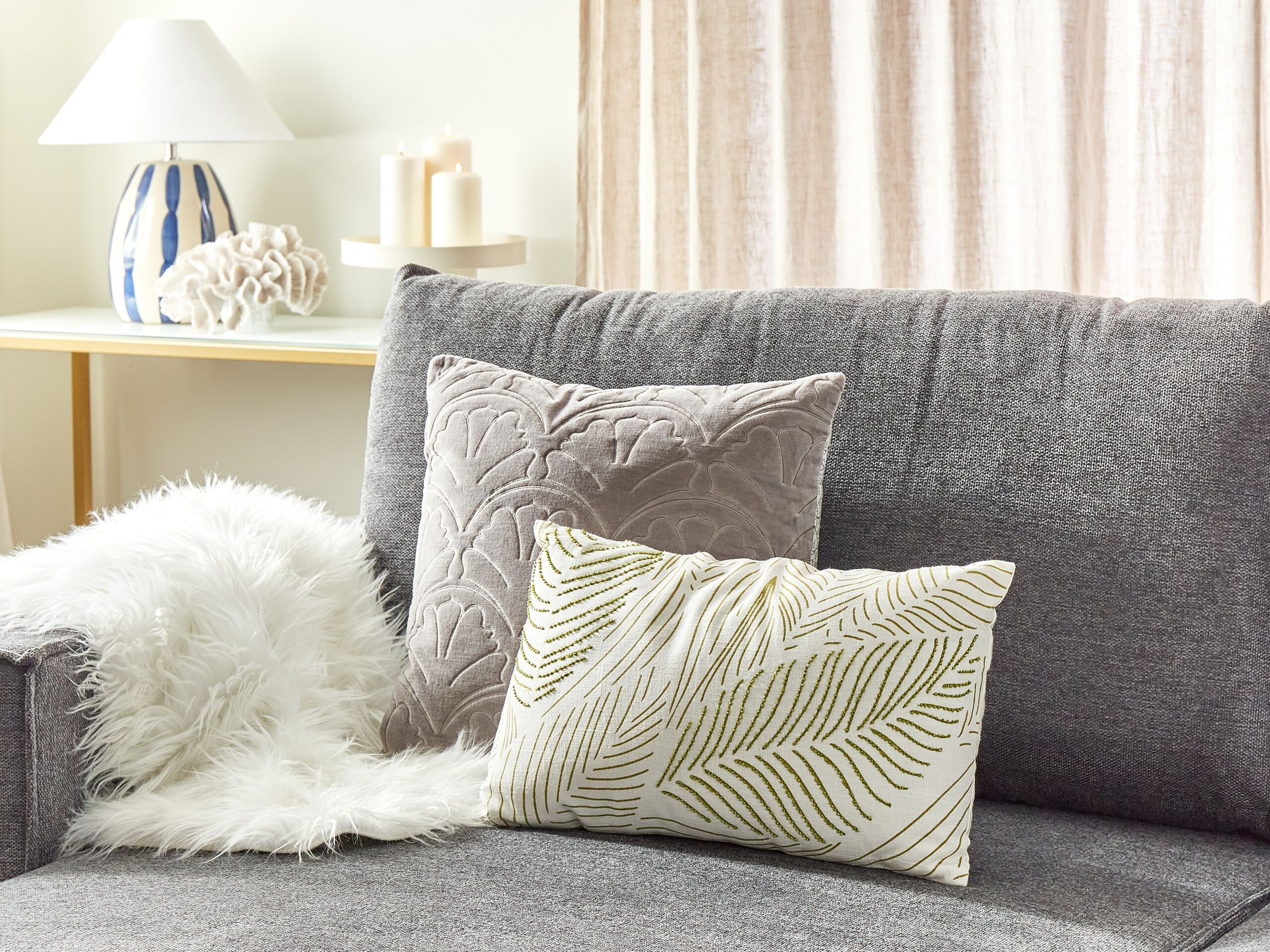 Beliani - SPANDOREA - Sierkussen - Wit|Groen - 30 x 50 cm - Katoen