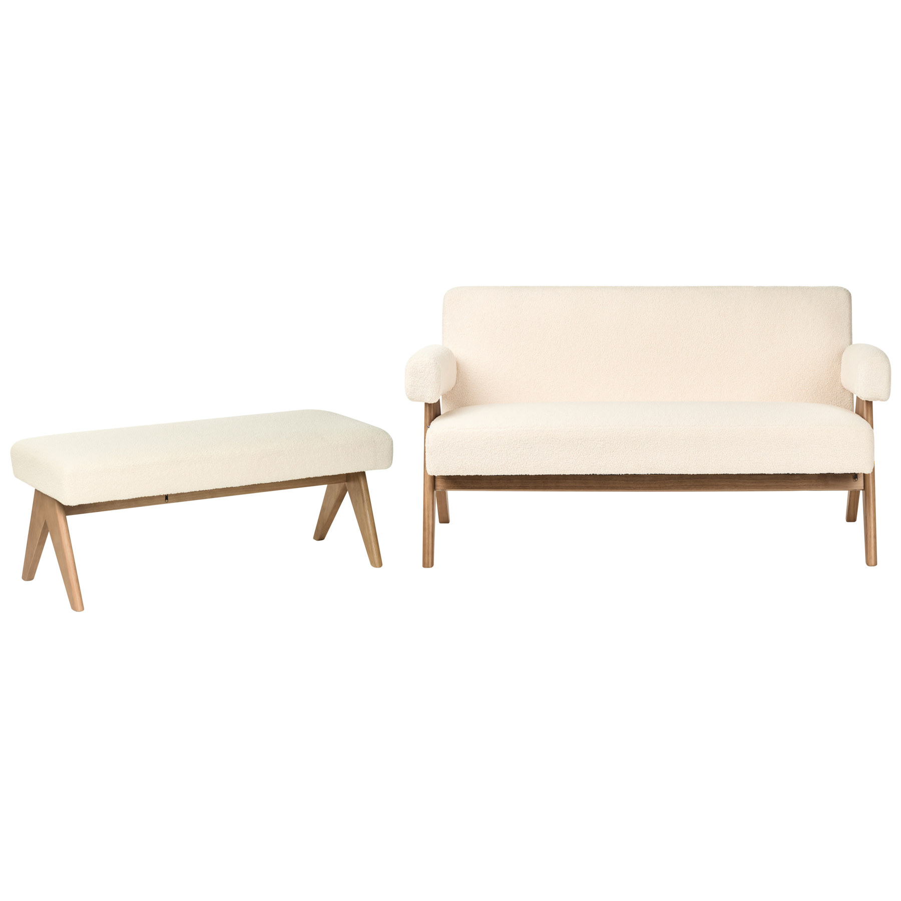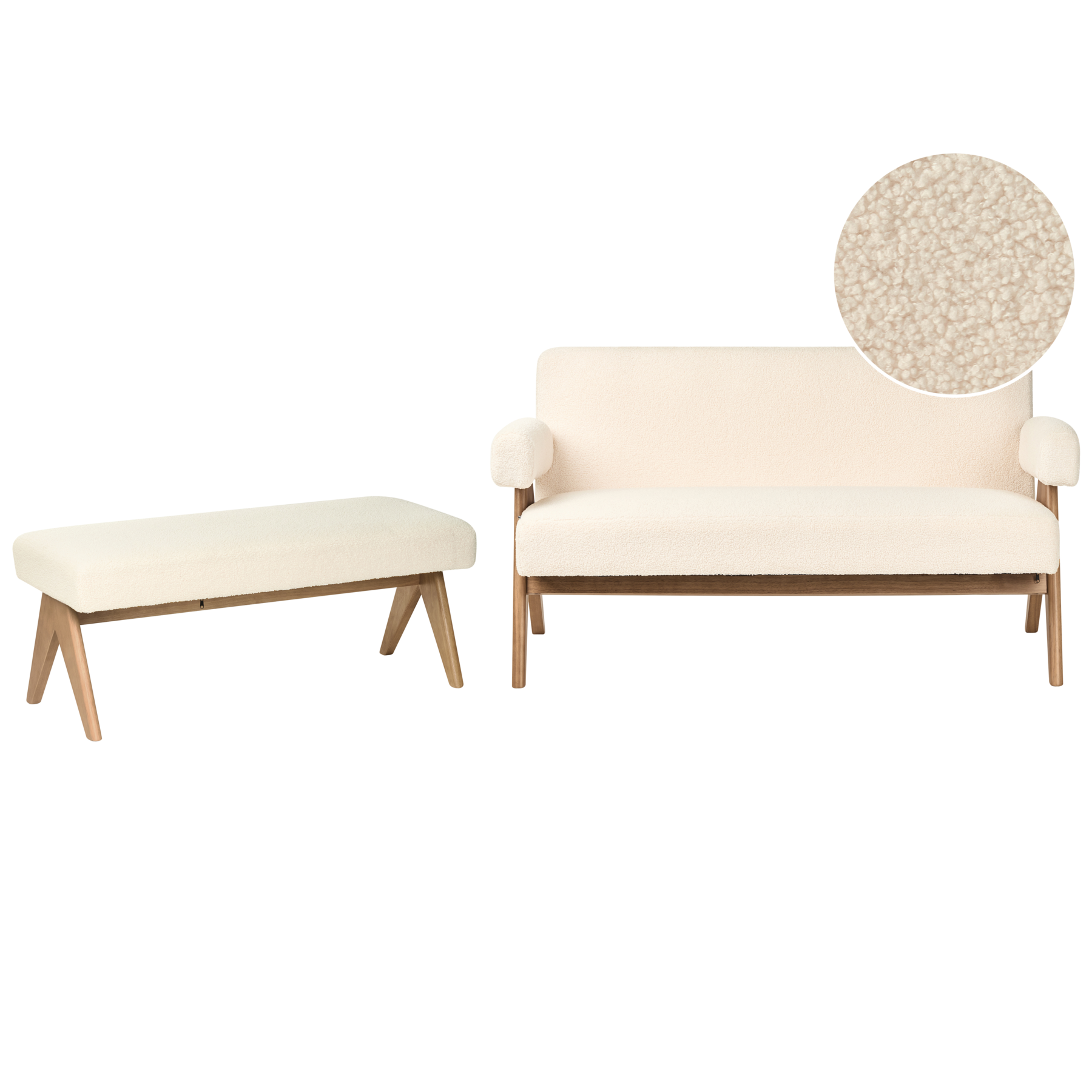 Beliani - TAMRE - Bankenset - Gebroken wit|Donkerbruin - Bouclé