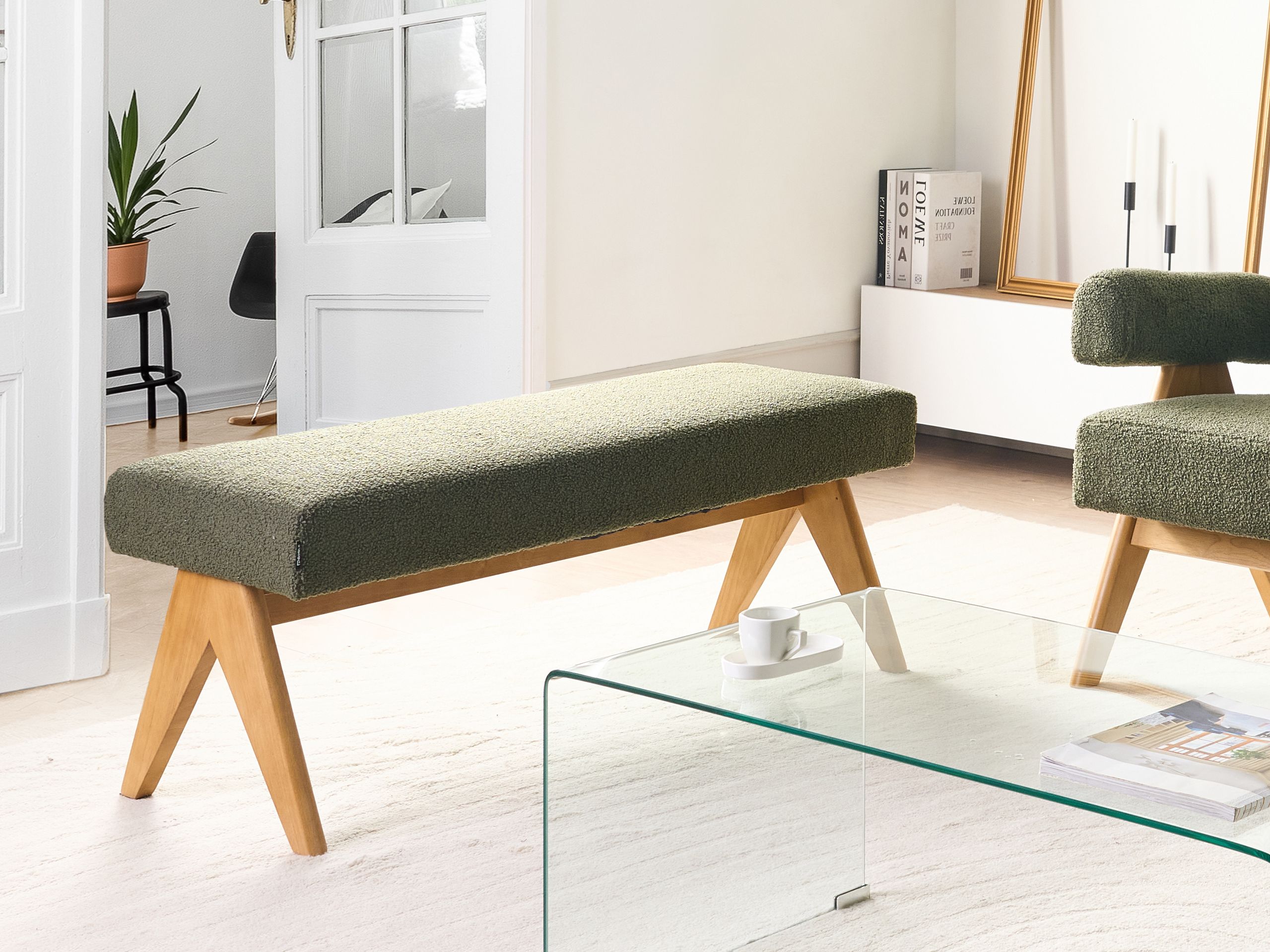 Beliani - TAMRE - Bankje - Groen|Lichtbruin - Bouclé