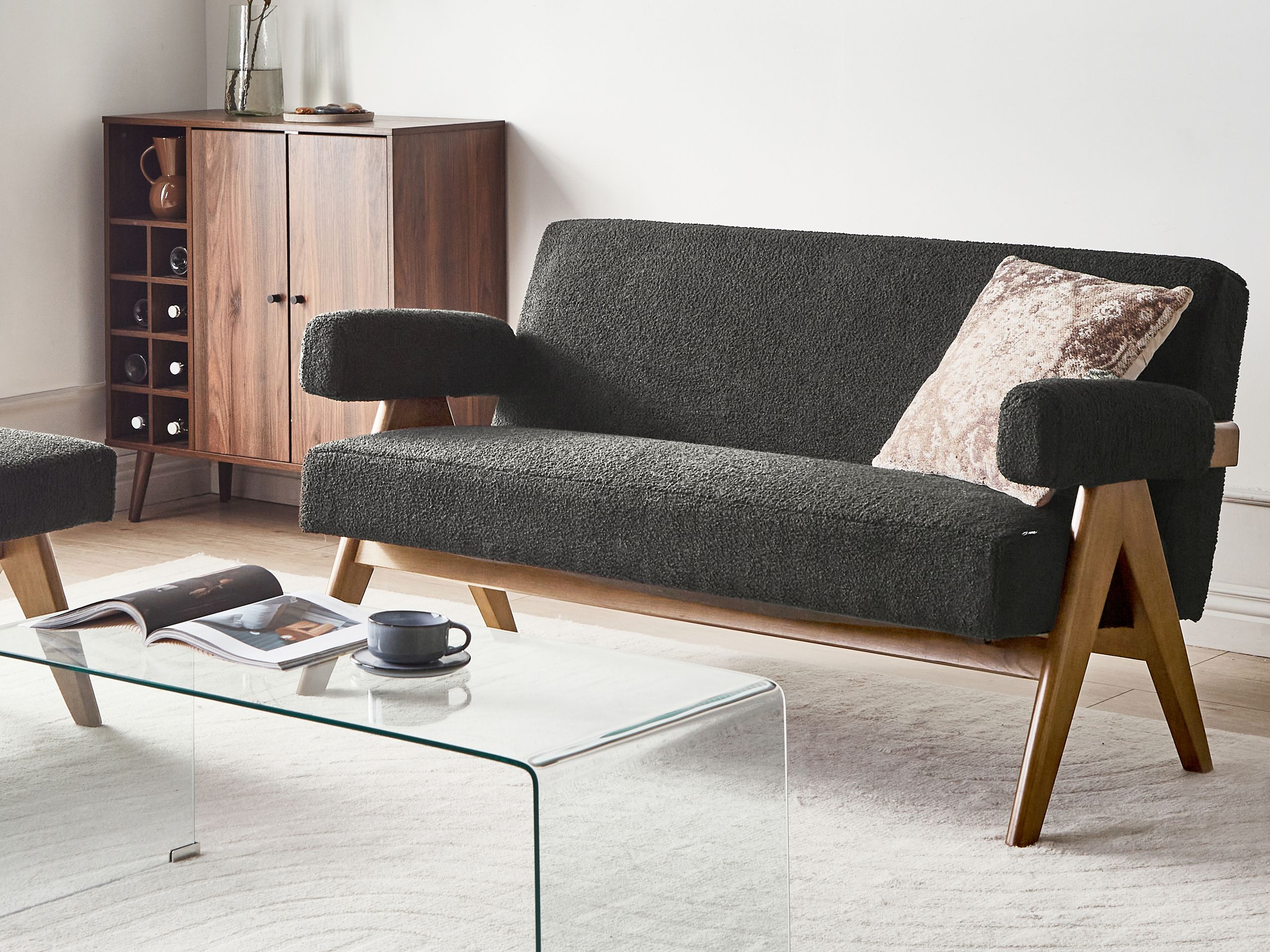 Beliani - TAMRE - Tweezitsbank - Zwart|Donkerbruin - Bouclé