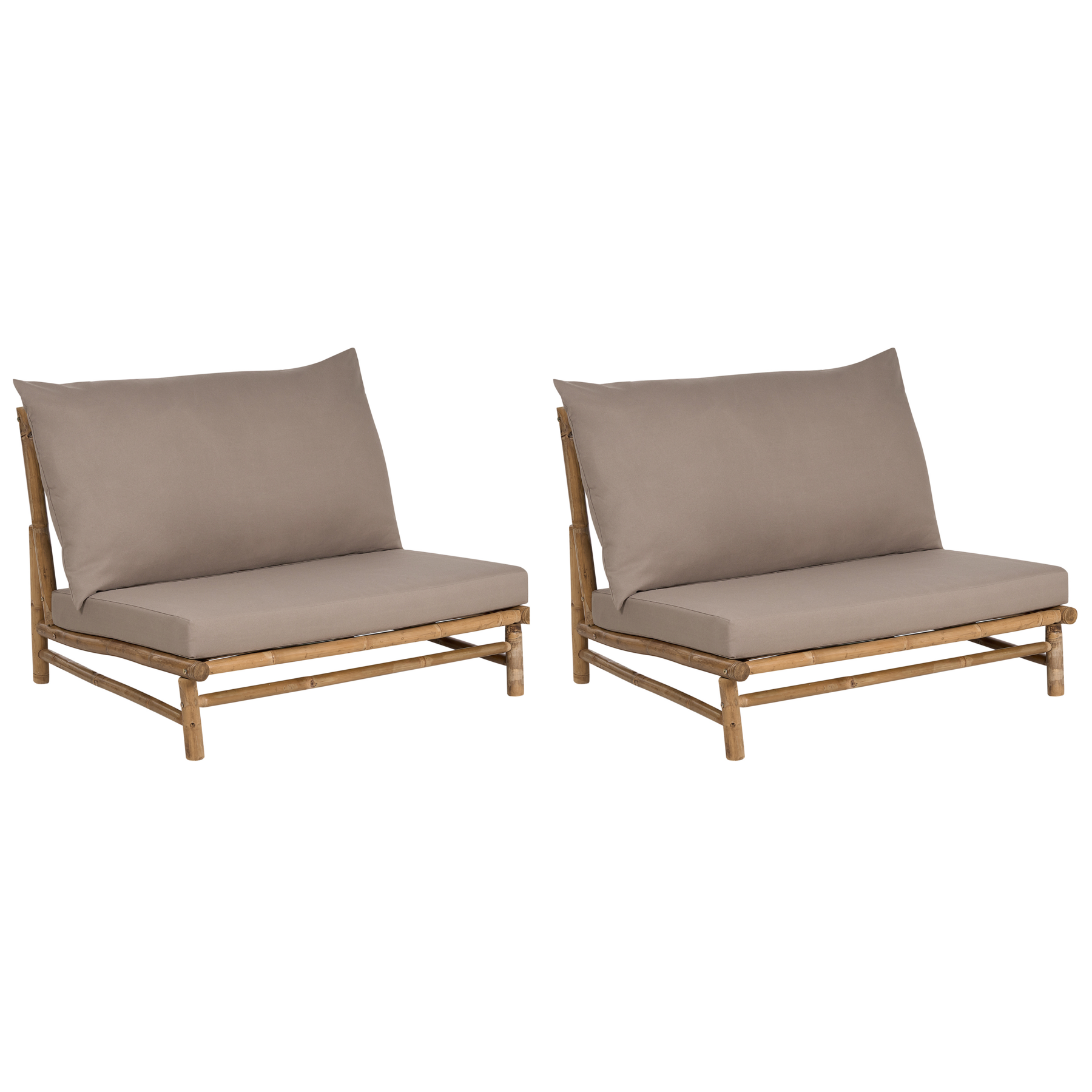 Beliani - TODI - Fauteuil set van 2 - Lichthout|Taupe - Bamboe