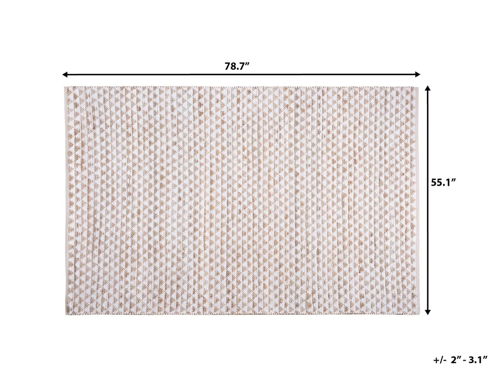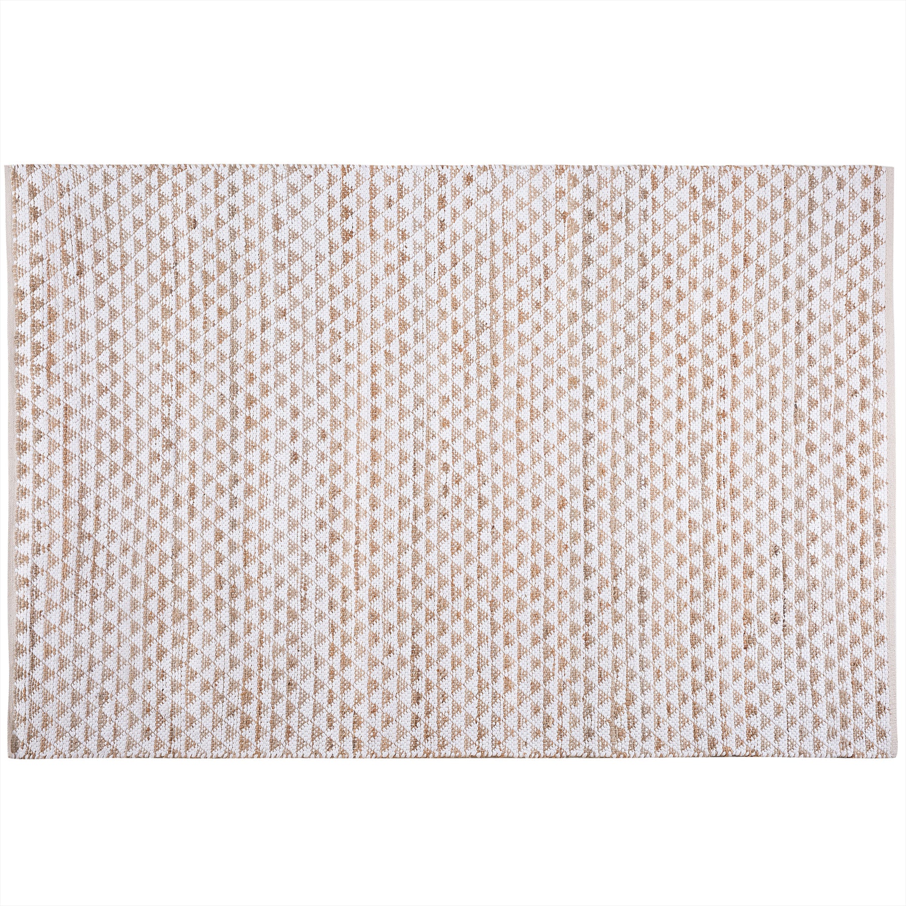 Beliani-TUNCELI-Laagpolig vloerkleed-Lichtbeige-140 x 200 cm-Katoen