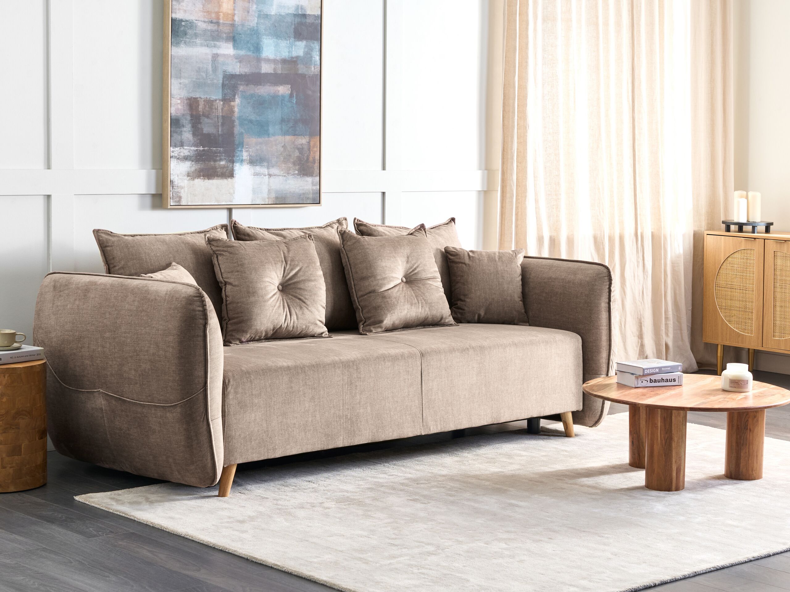 Beliani - VALLANES - Slaapbank met opbergruimte - Lichtbruin - Fluweel