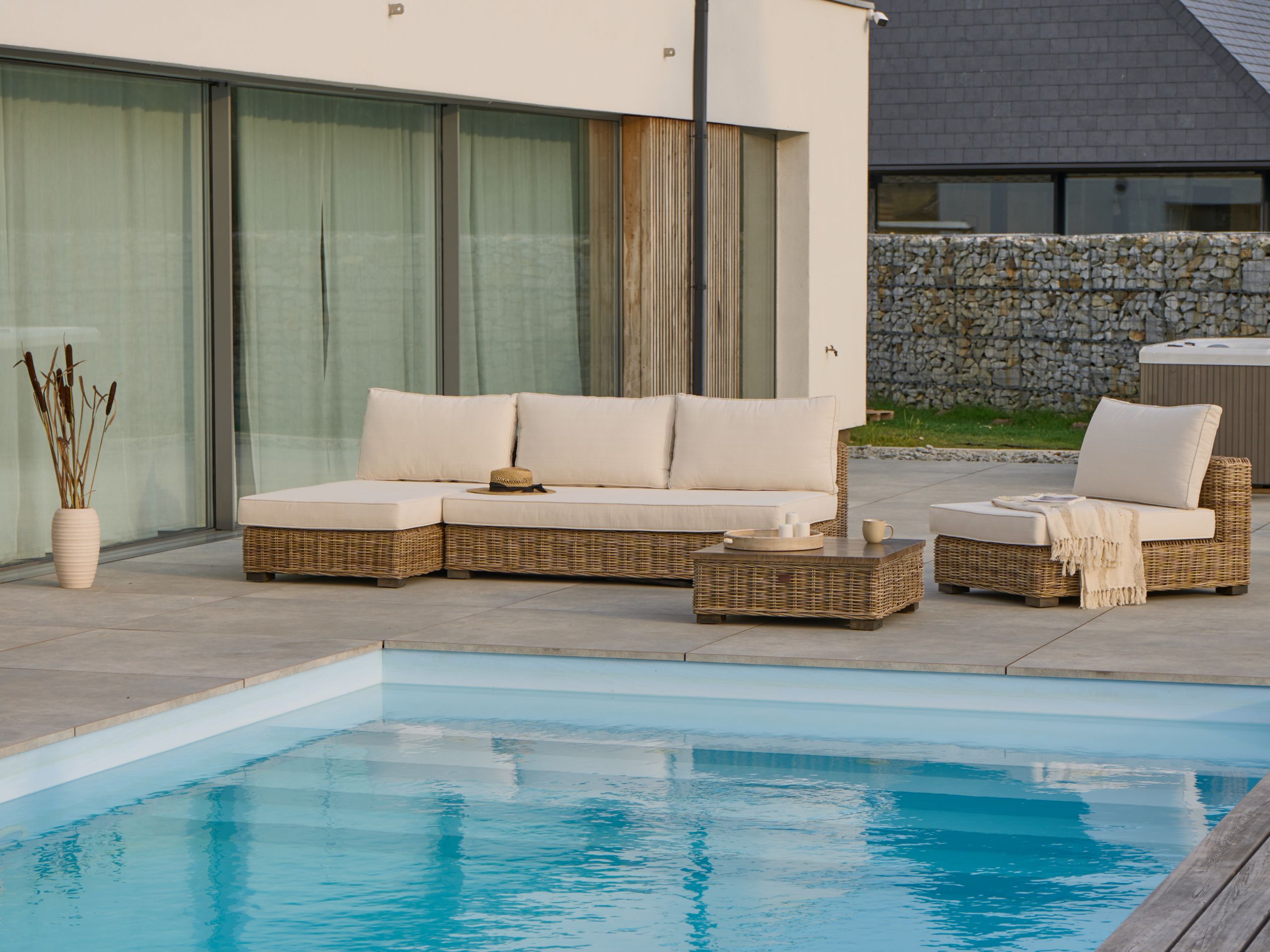 Beliani-VARALLO-Loungeset 4-zits-Gebroken wit-Linkszijdig-Rotan