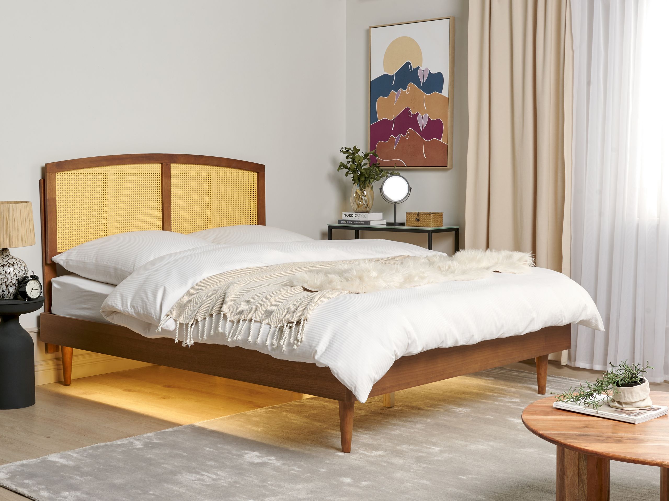 Beliani-VARZY -Bed met LED-Lichtbruin-160 x 200 cm-Rubberhout