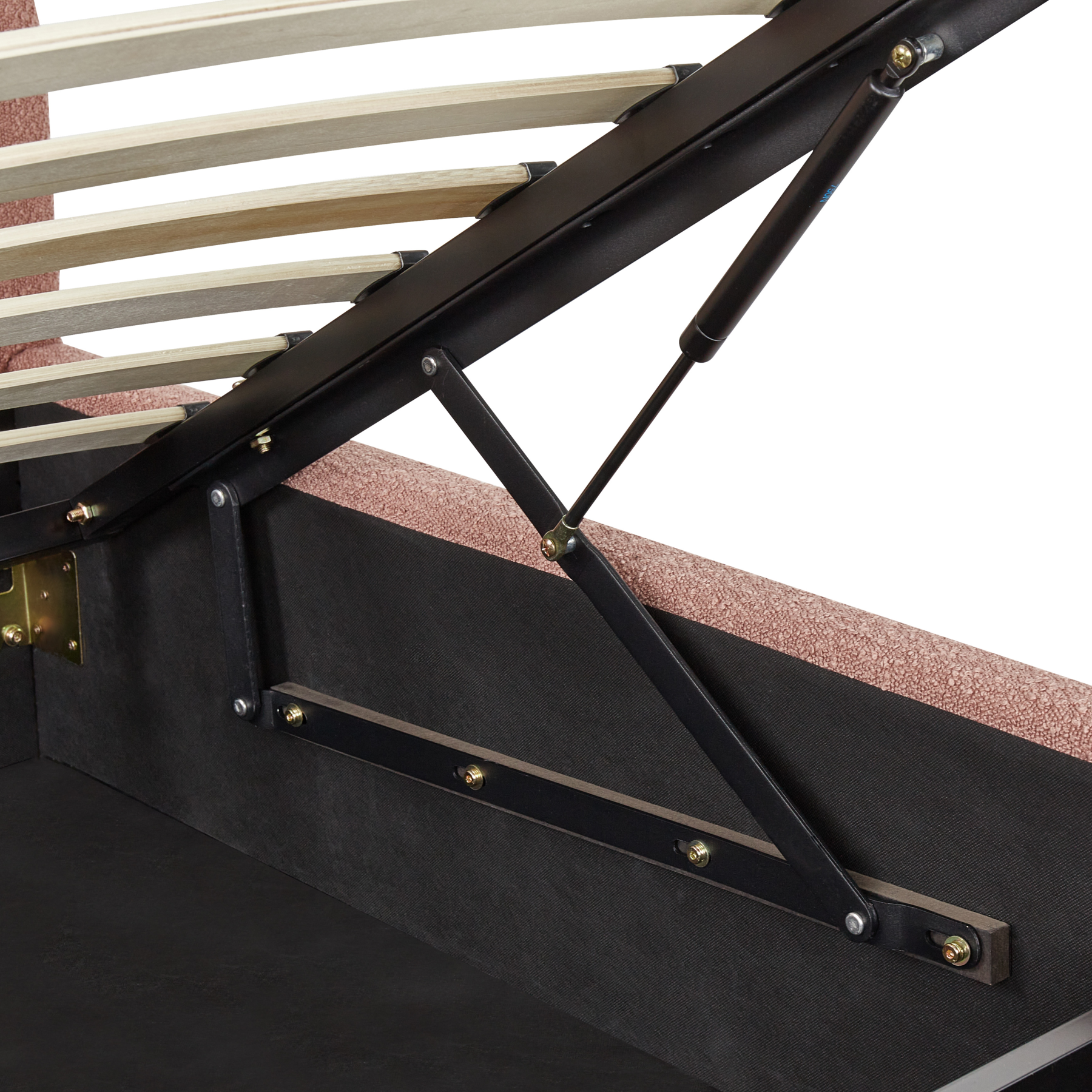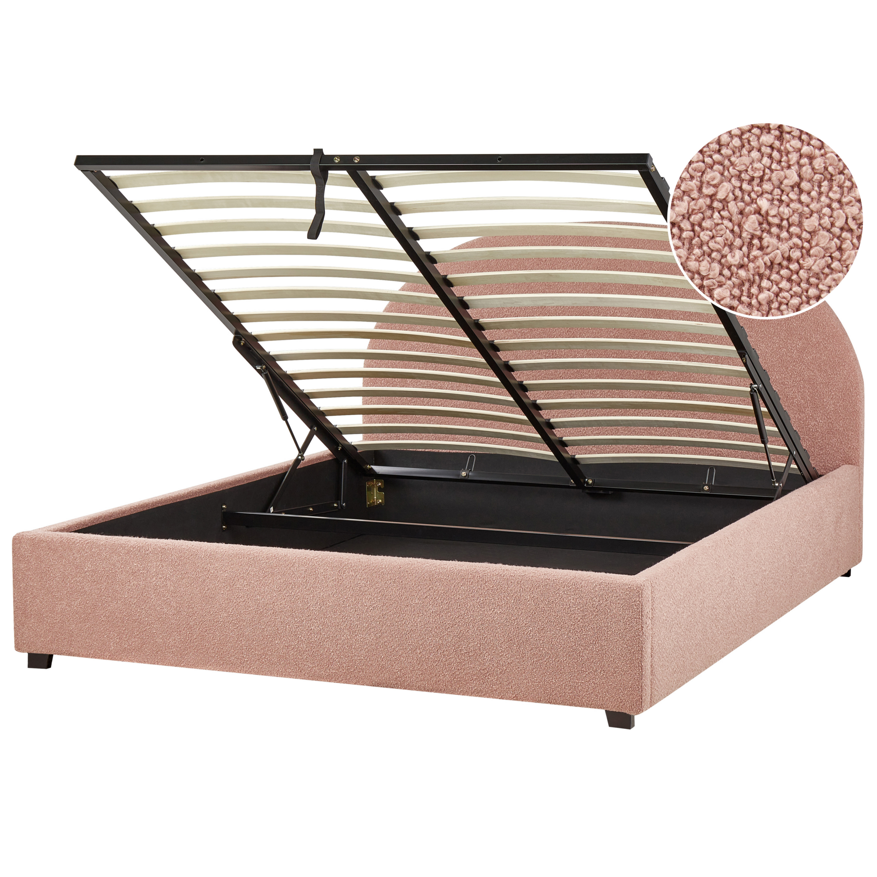 Beliani-VAUCLUSE-Bed met opbergruimte-Pastelroze-160 x 200 cm-Bouclé