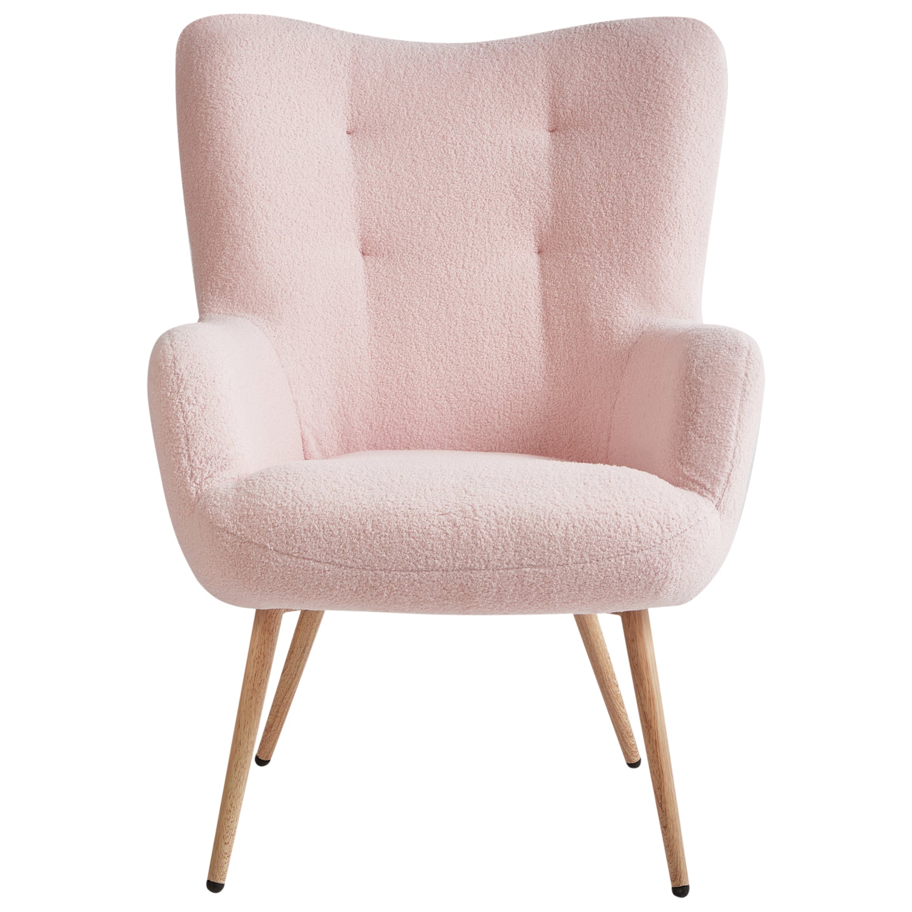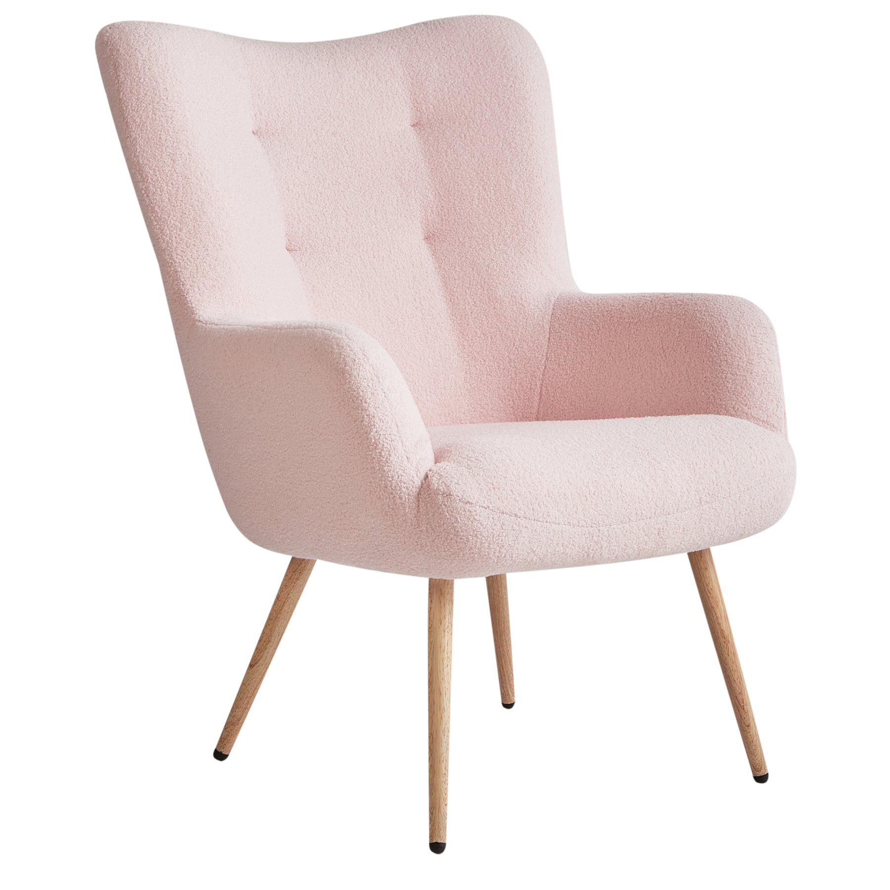 Beliani - VEJLE II - Fauteuil met hocker - Pastelroze - Bouclé