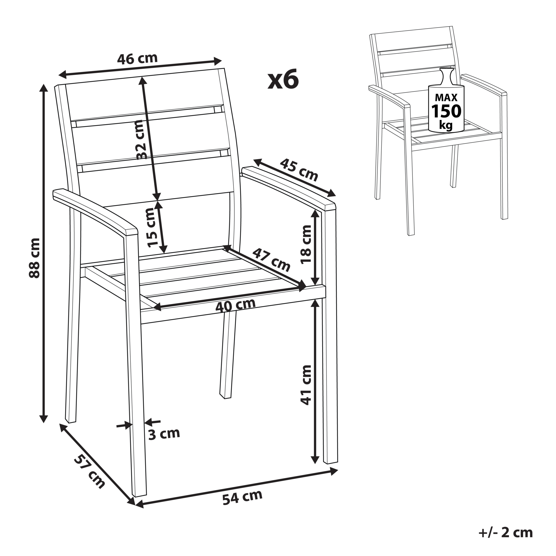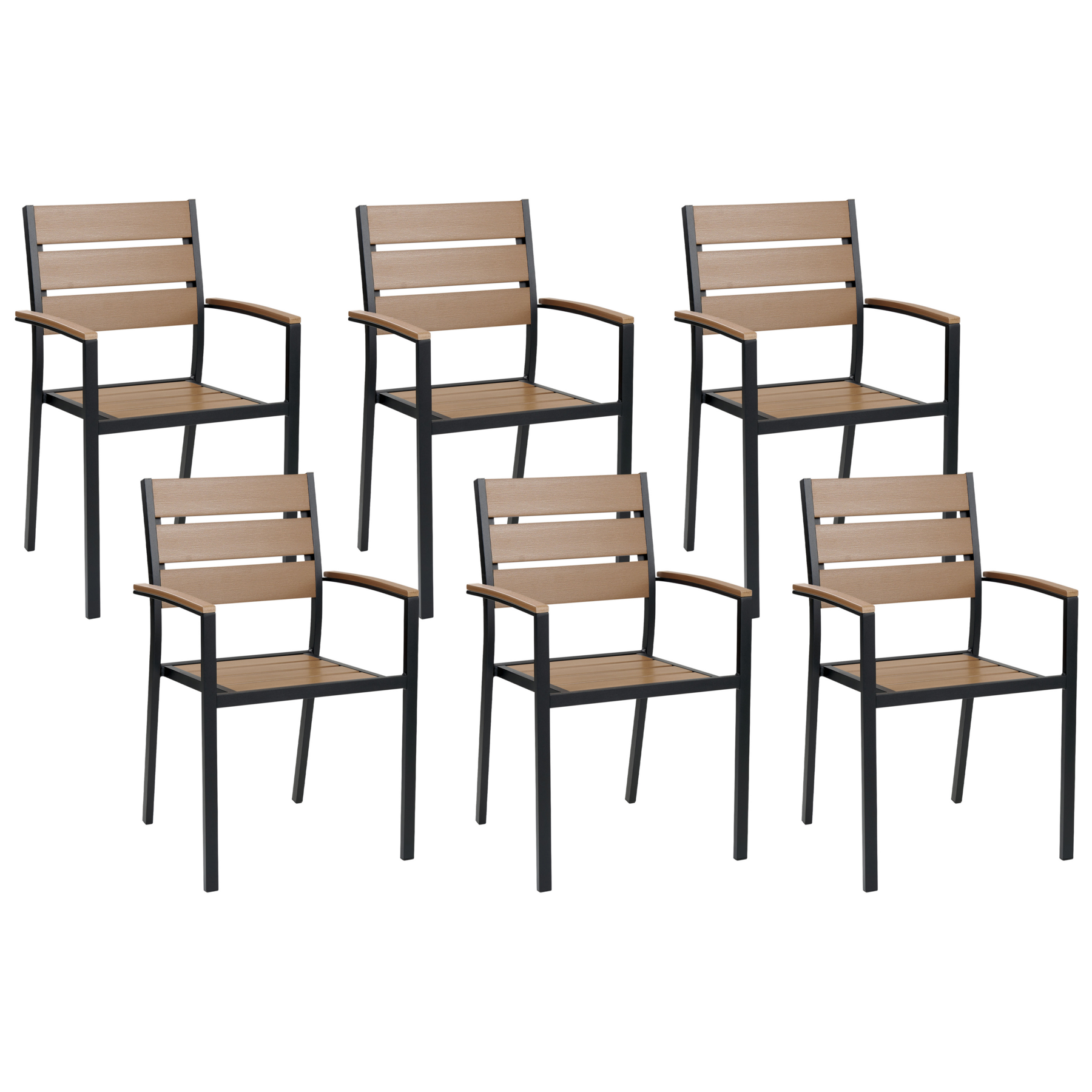 Beliani - VERNIO - Tuinstoel set van 6 - Lichthout|Zwart - Kunsthout