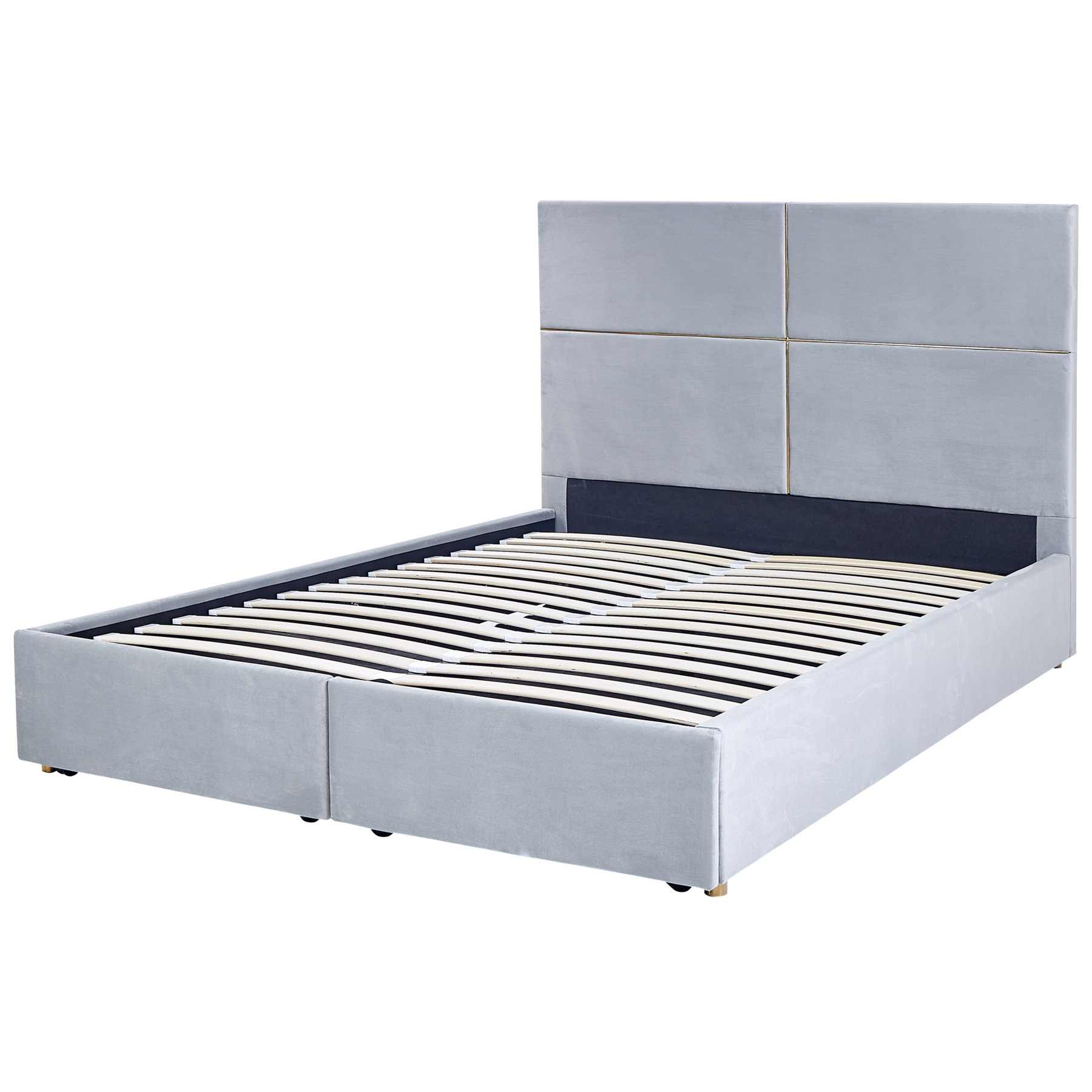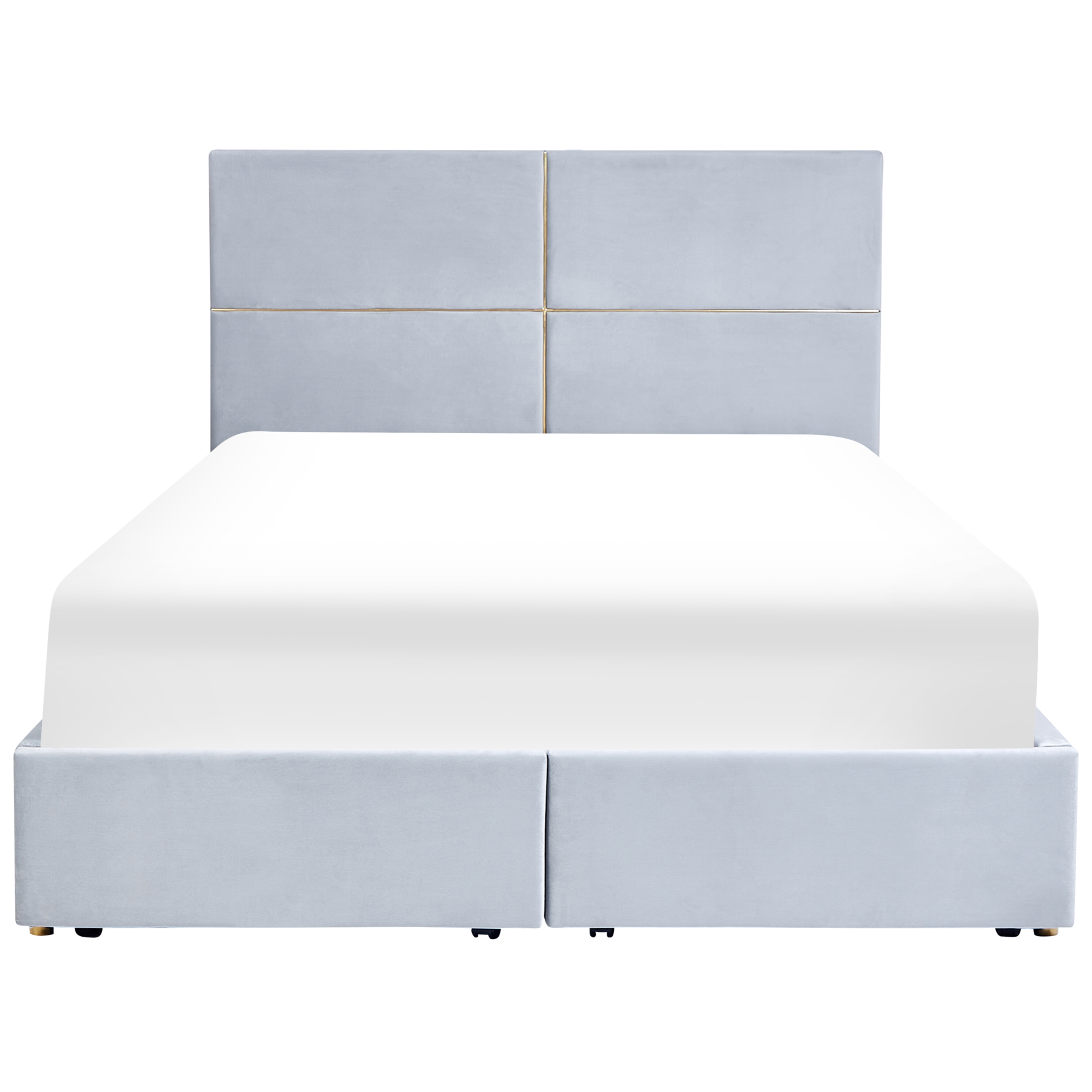 Beliani-VERNOYES-Bed met opbergruimte-Lichtgrijs-160 x 200 cm-Fluweel
