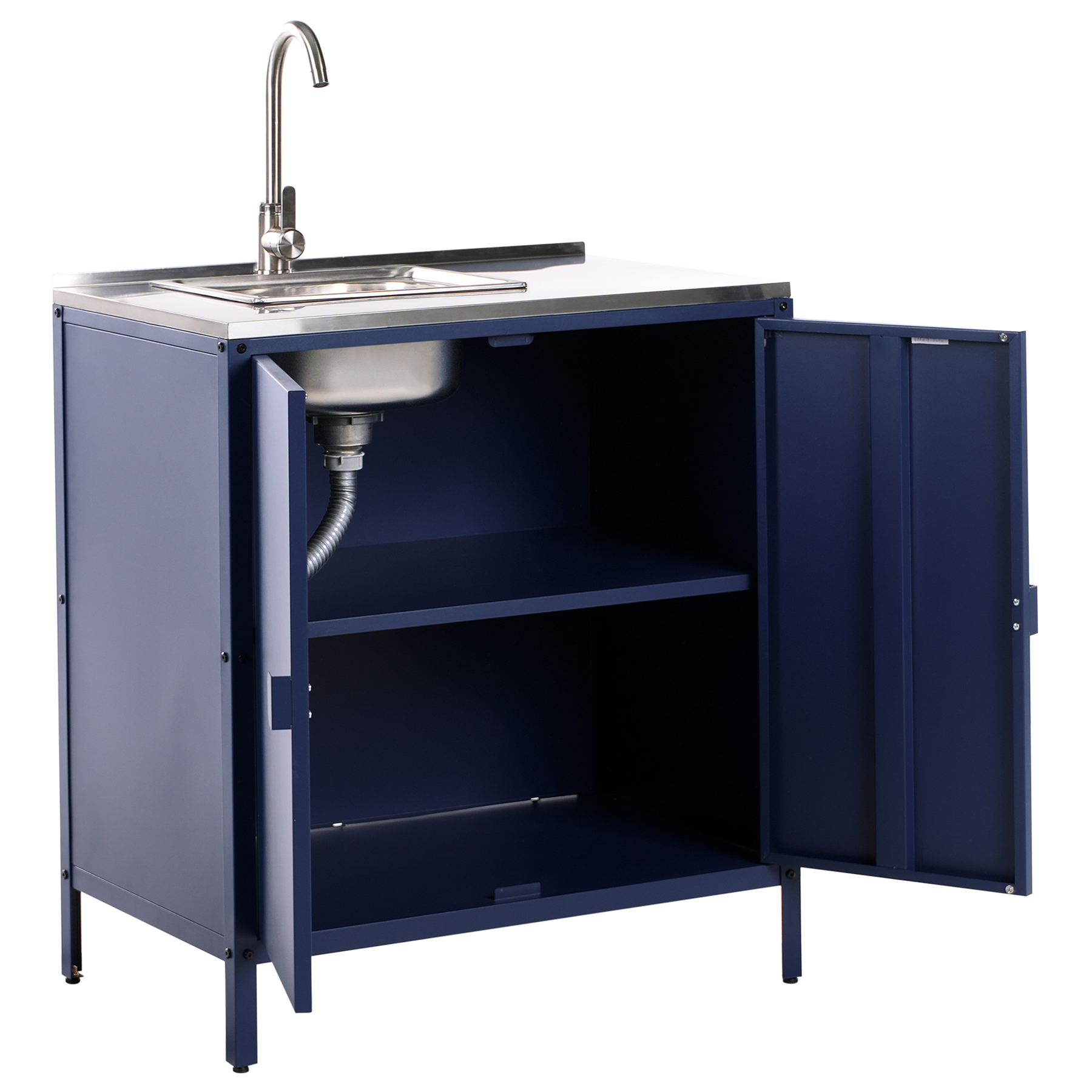 Beliani - VILAMA - Tuin keukenset 2-delig met spoelbak - Blauw - RVS