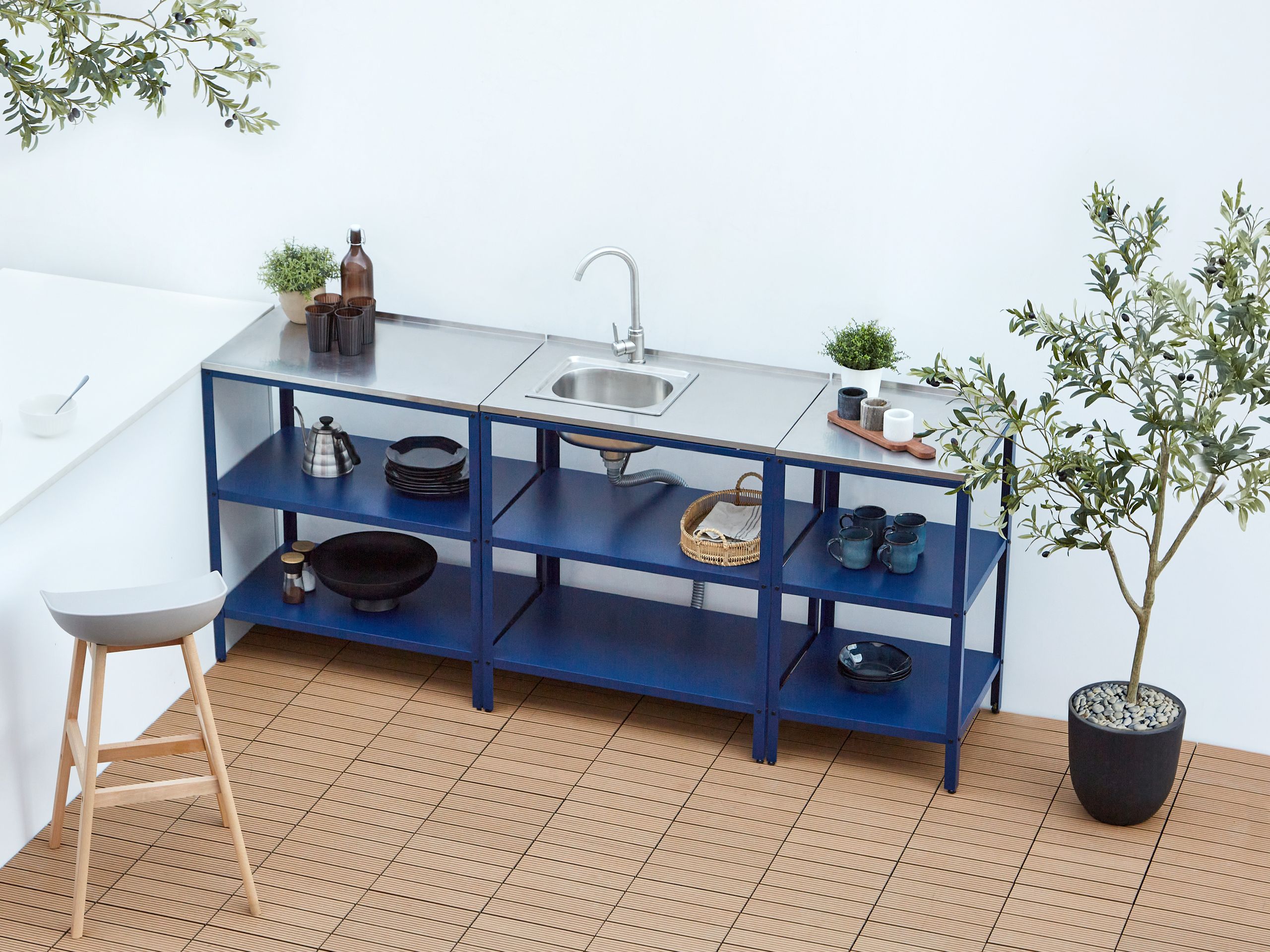 Beliani - VILAMA - Tuin keukenset 3-delig met spoelbak - Blauw - RVS