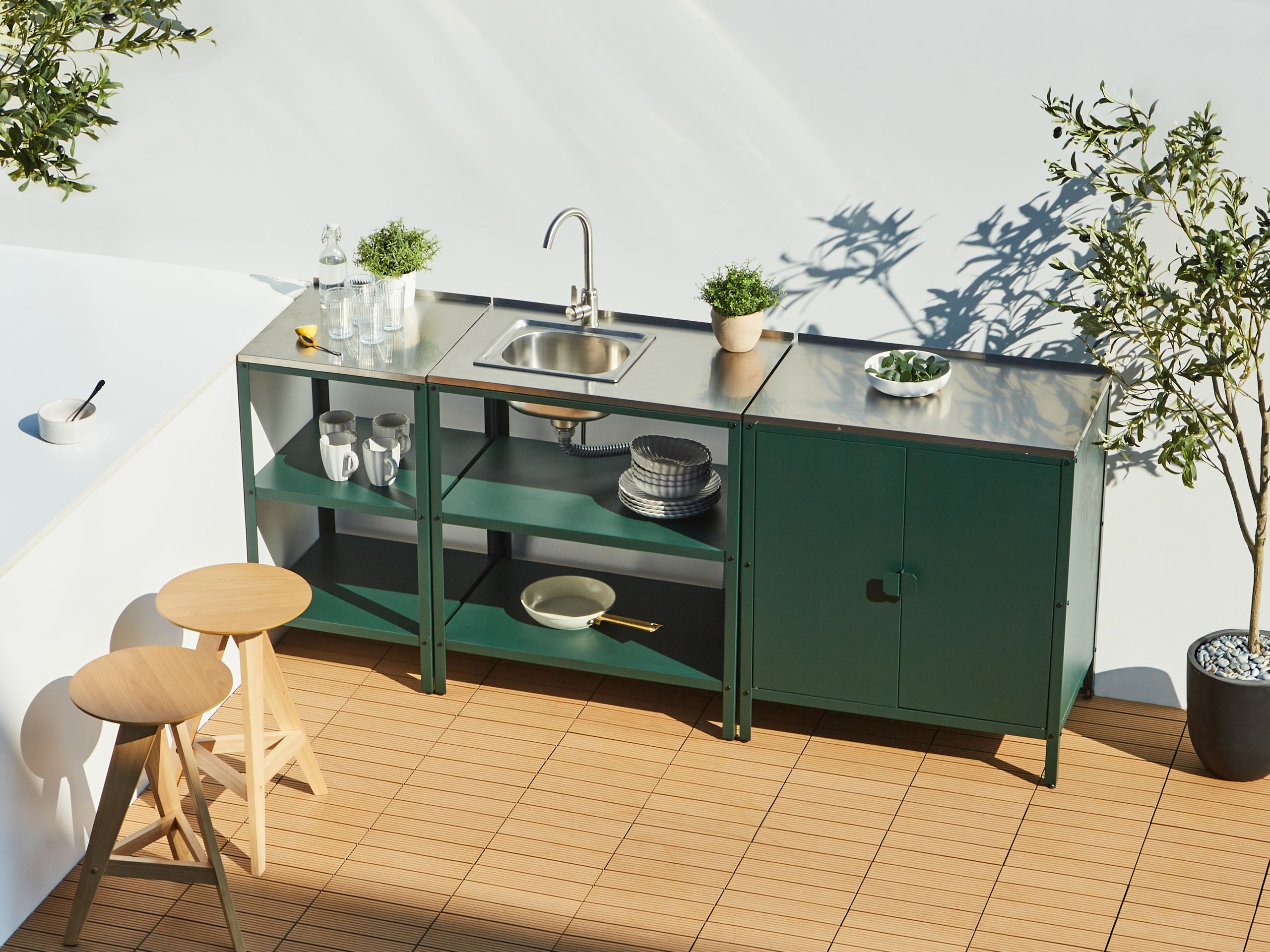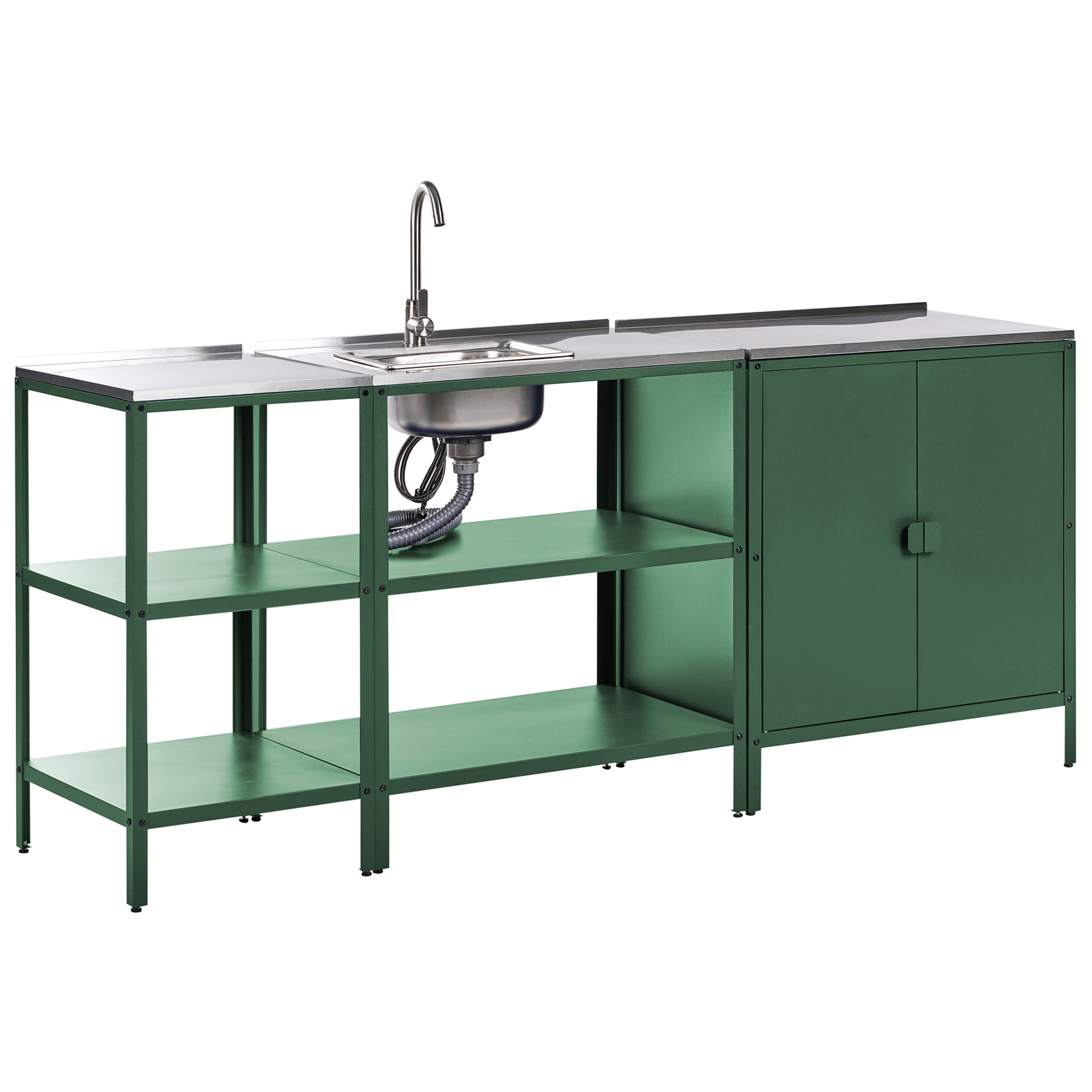 Beliani-VILAMA-Tuin kookeiland met keukenkast 3-delig-Groen-RVS