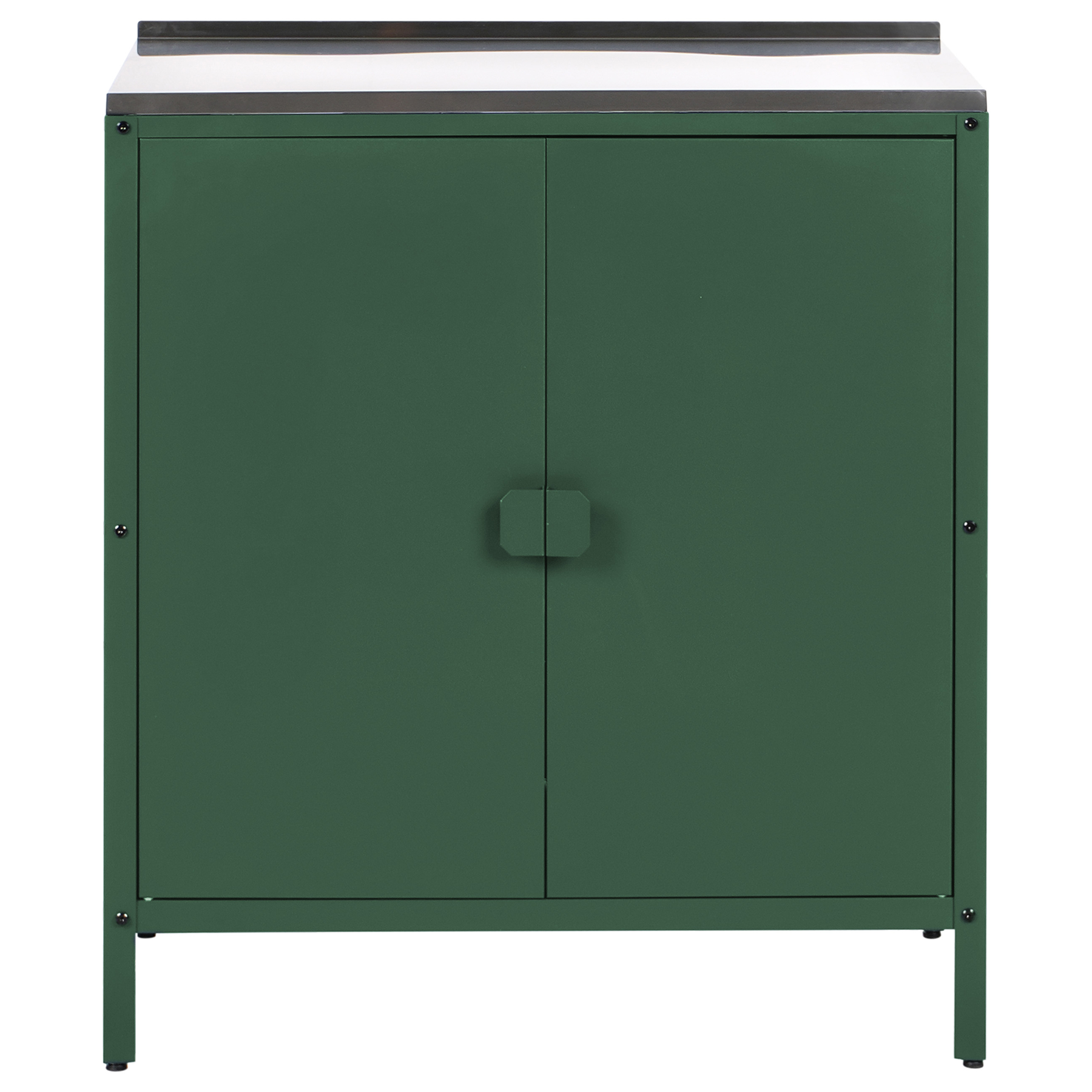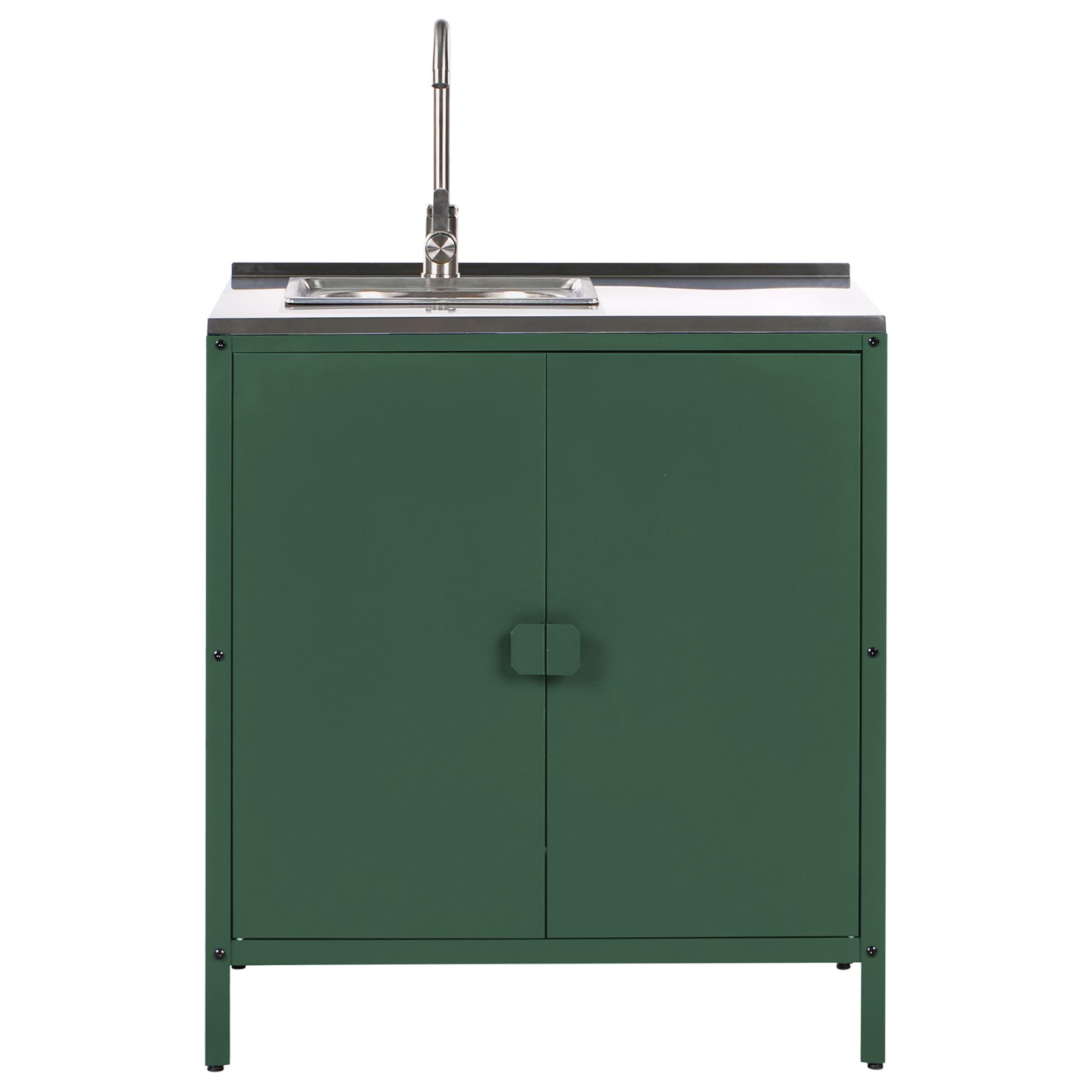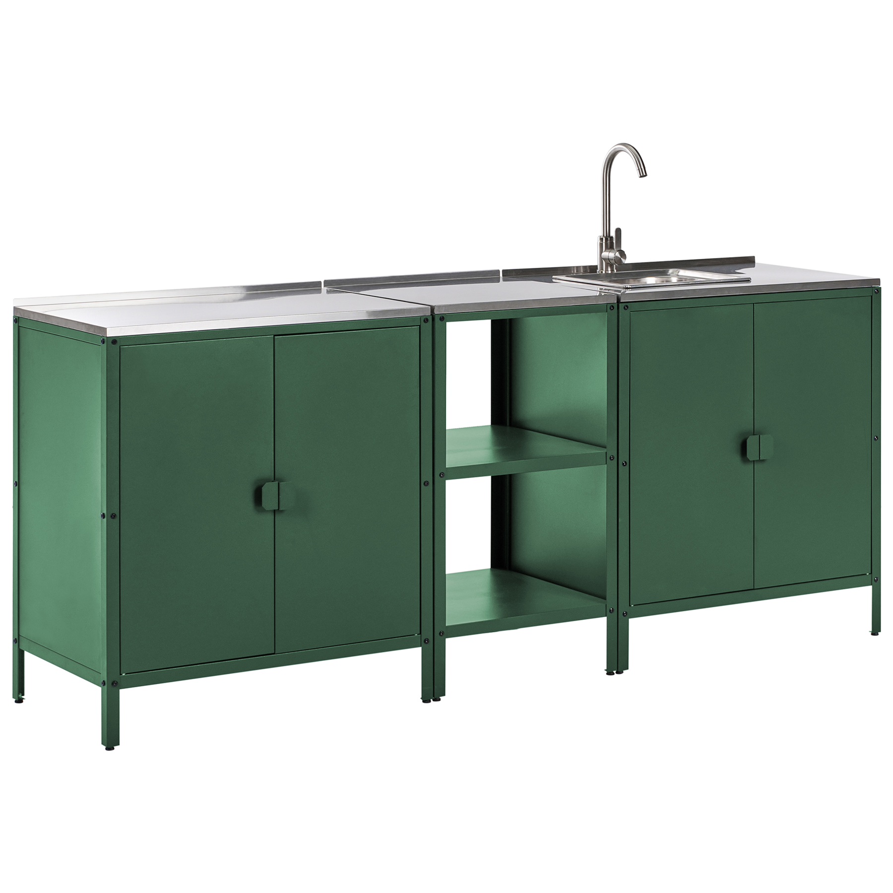 Beliani-VILAMA-Tuinkookeiland met kast en spoelbak 3-delig-Groen-RVS