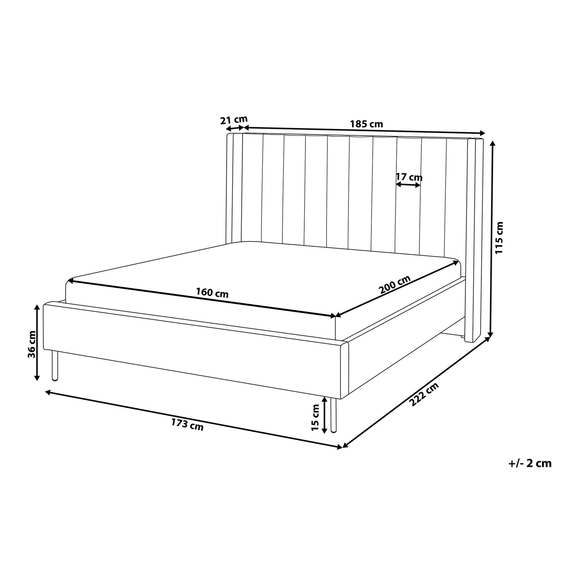 Beliani - VILLETTE - Tweepersoonsbed - Grijs - 160 x 200 cm - Fluweel