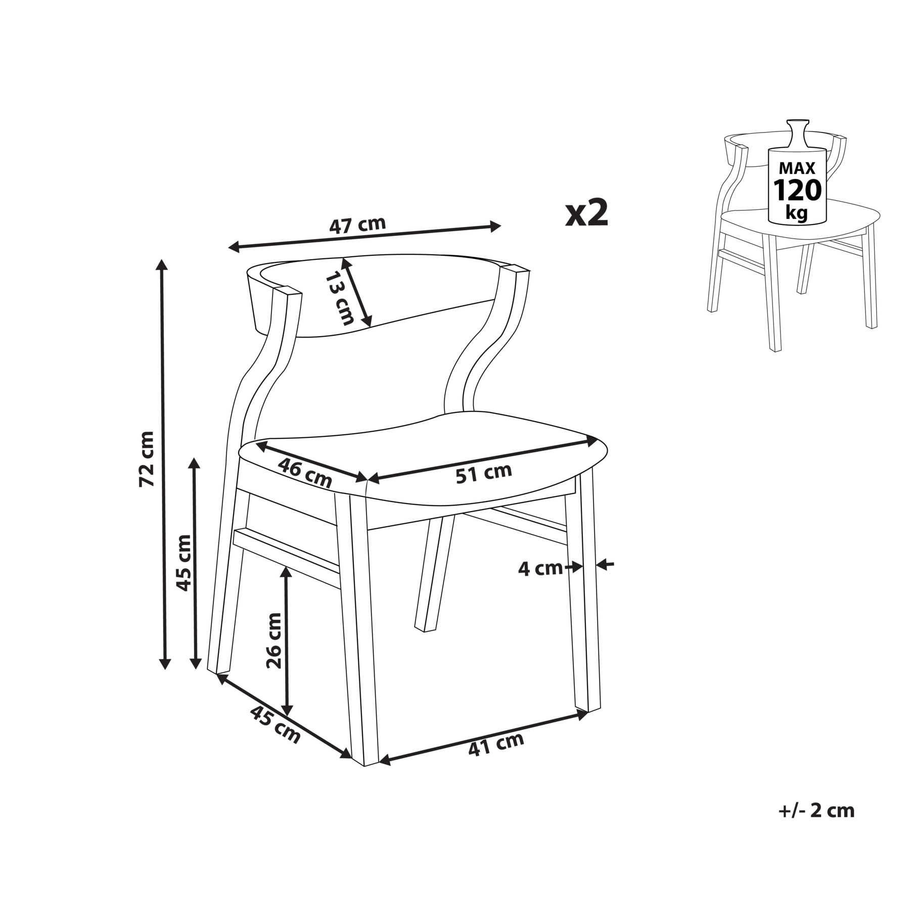 | Maximale draagkracht | 120 kg |