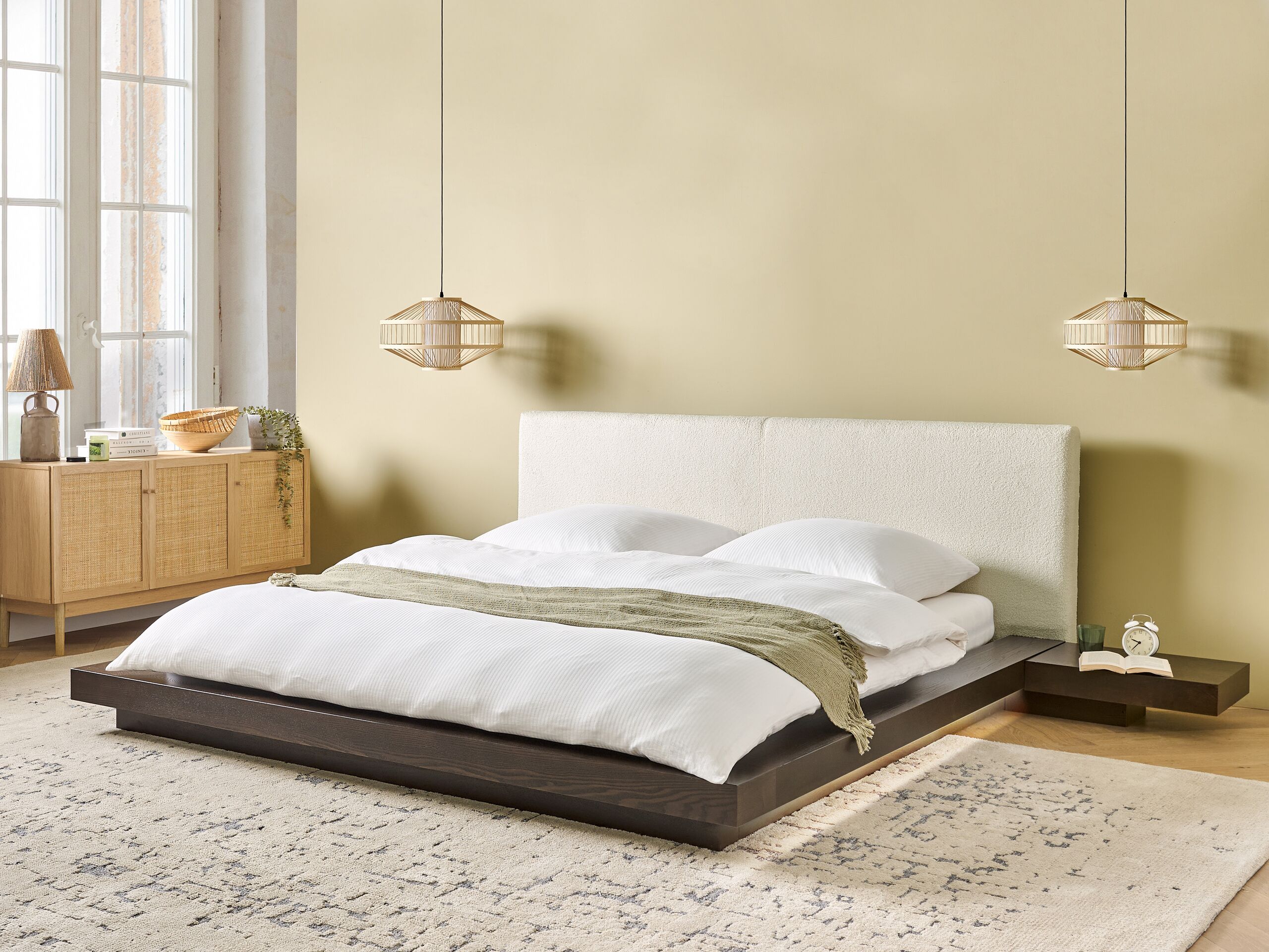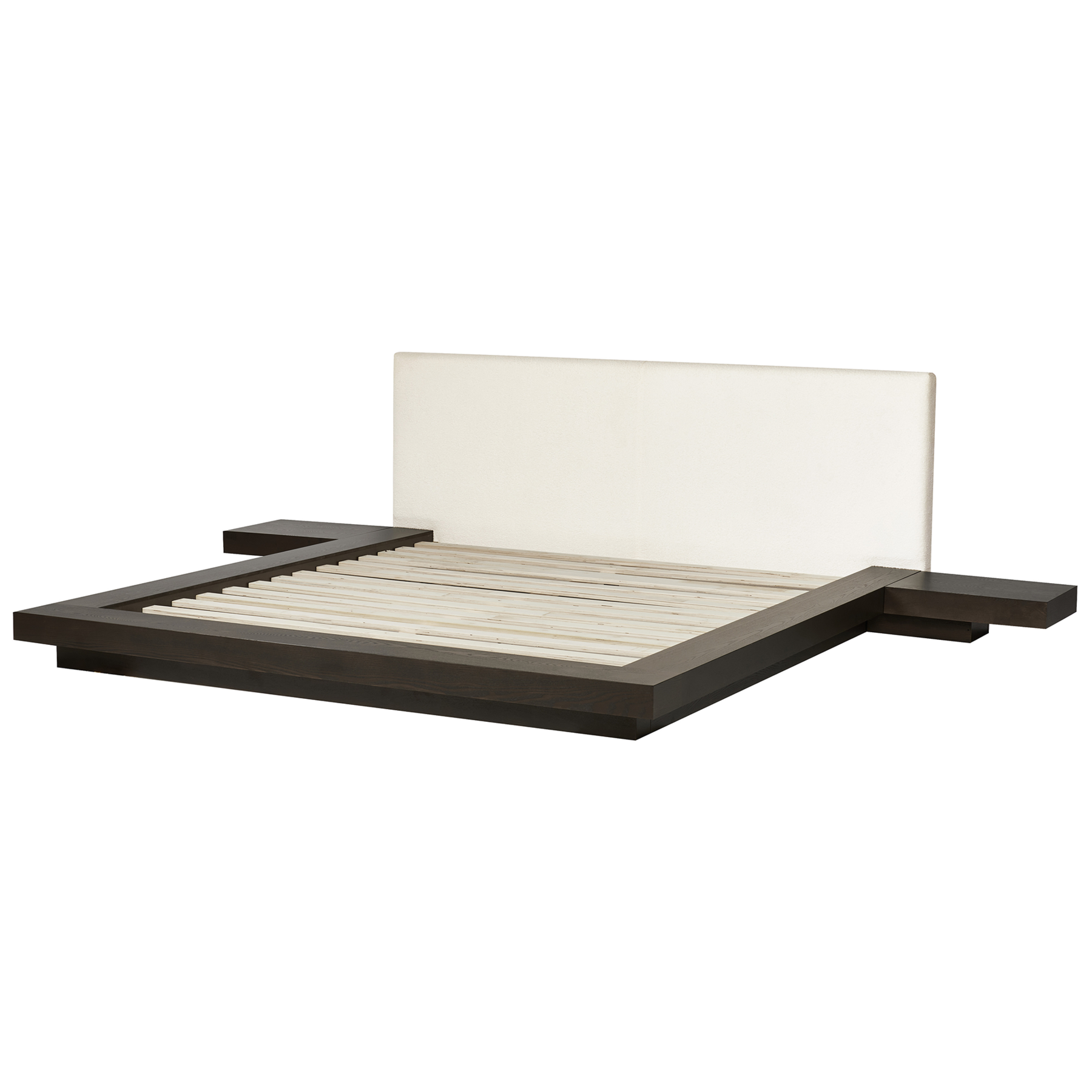 Beliani-ZEN-Tweepersoonsbed met LED-Donkerhout-180 x 200 cm-Bouclé
