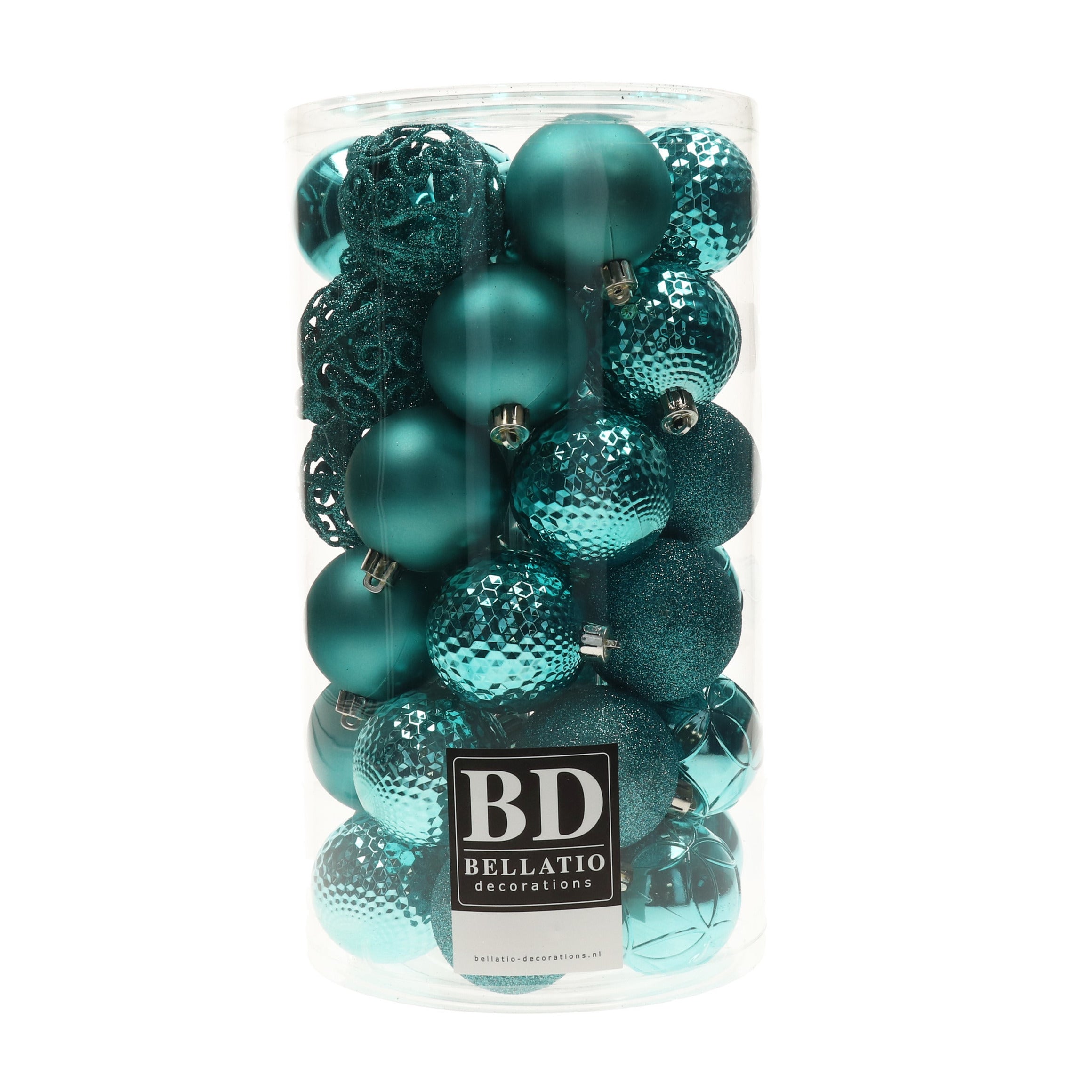 Bellatio decorations Kerstballen - 37x - mix - turquoise - 6 cm