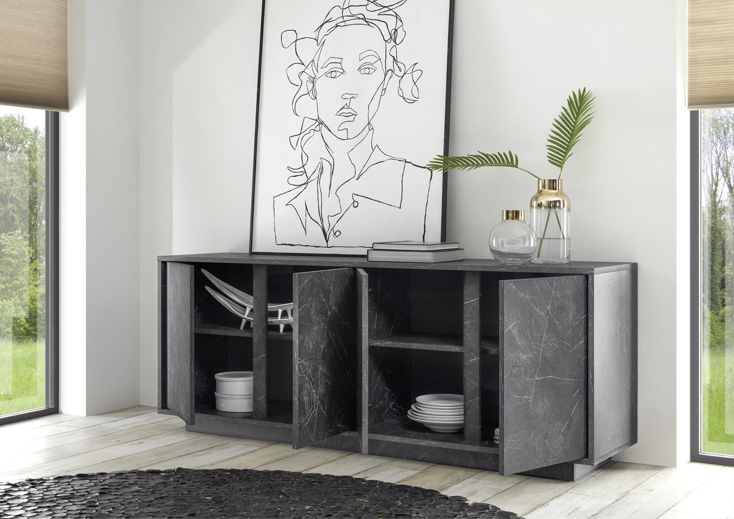 Benvenuto Design Carrara Dressoir 4 deurs Antraciet