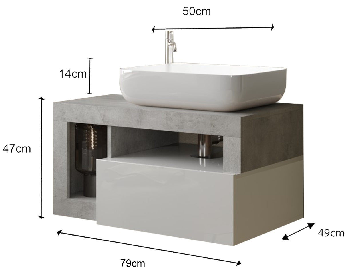 Benvenuto Design Hamburg 79 cm Zwevend Wastafel en Onderkast Beton