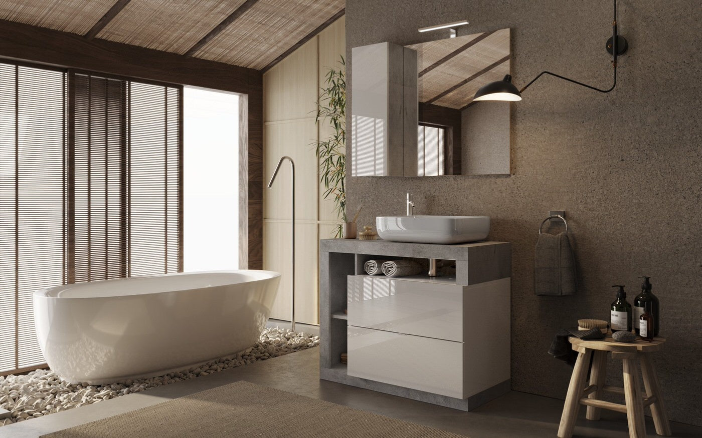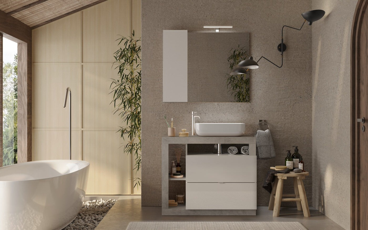 Benvenuto Design Hamburg 92 cm Beton Staand Wastafel en Onderkast