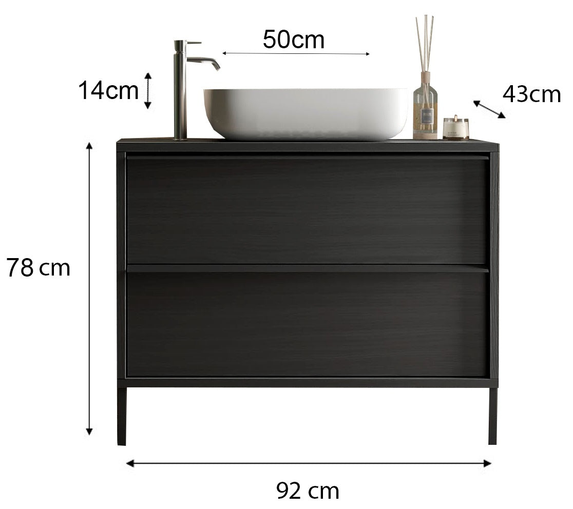 Benvenuto Design Steel 92 cm Staand Wastafel en Onderkast