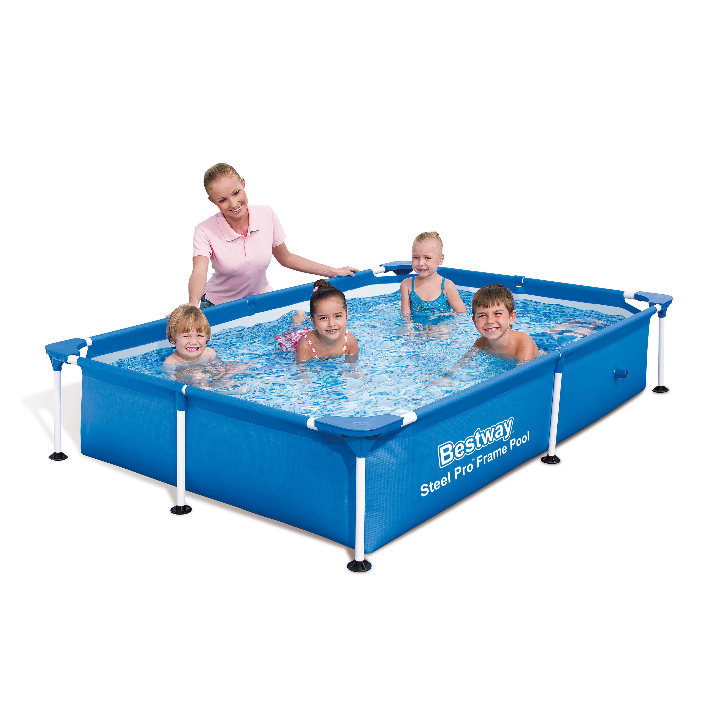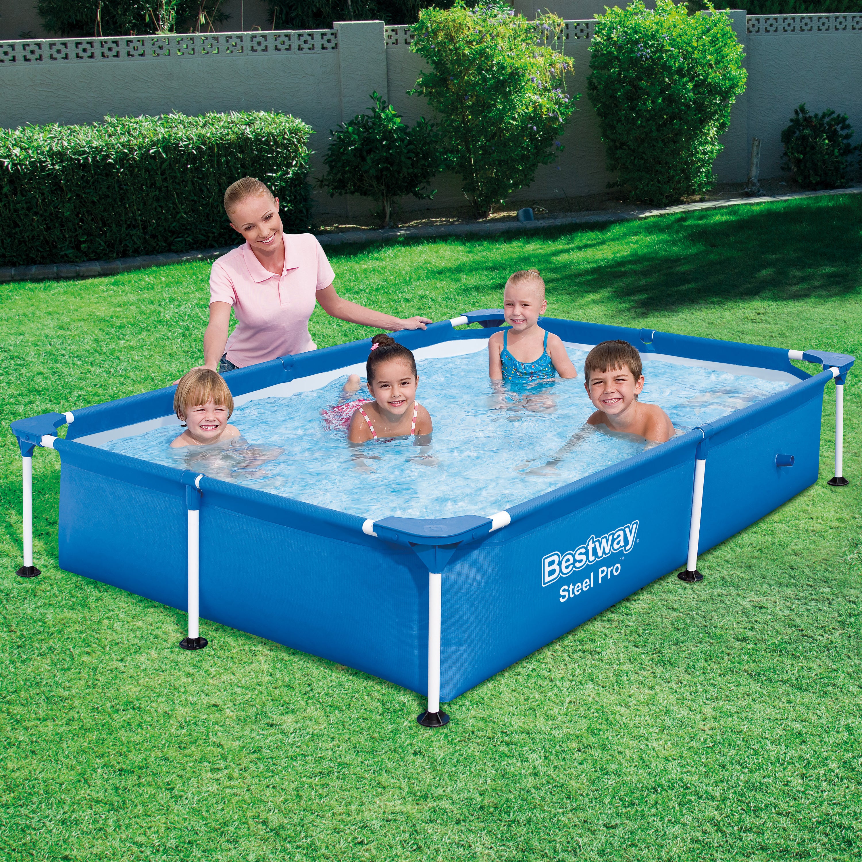 Zwemmen in eigen tuin Zoveel zwemplezier in eigen tuin, dat moet wel een fantastische zomer worden! Het Steel Pro zwembad is makkelijk op te zetten (en weer op te ruimen), dankzij het simpele maar sterke, stalen frame. Het Tritech materiaal (lagen gelamineerd PVC met een polyester kern) is scheurvast en zelfs bestand tegen UV-stralen en chloor. Er wordt geen trapje of waterfilterpomp meegeleverd.