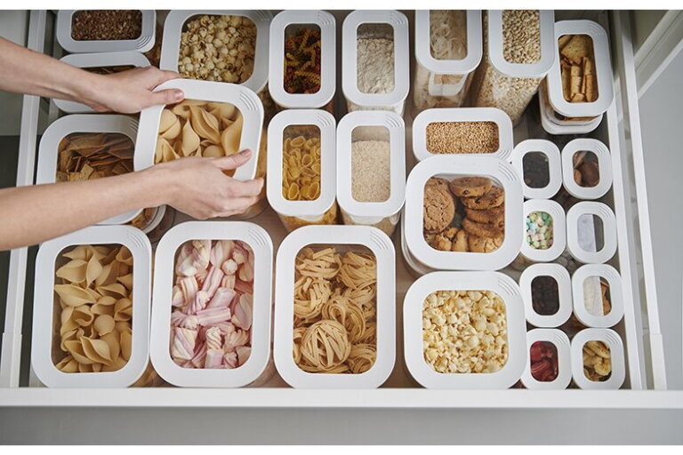 Bewaardoos Modula 1000 ml, voorzien van een doorzichtige deksel met zwarte ring. Deze rechthoekige doos van Mepal met afgeronde hoeken heeft een inhoud van 1000 ml en geeft direct zicht op inhoud, ook in de keukenla! De zwarte afdichtring zorgt voor een perfecte afsluiting, waardoor deze voorraaddoos geschikt is voor het bewaren van droge etenswaren zoals koffiebonen, pasta, koekjes of bloem. De Modula bewaar- en opbergdozen zijn verkrijgbaar in verschillende maten en uitvoeringen, liggen goed in de hand en zijn makkelijk te openen. Bovendien zijn ze stapelbaar en vaatwasmachinebestendig. Hoe veeleisend u ook bent: Modula bewaardozen zijn erop berekend!