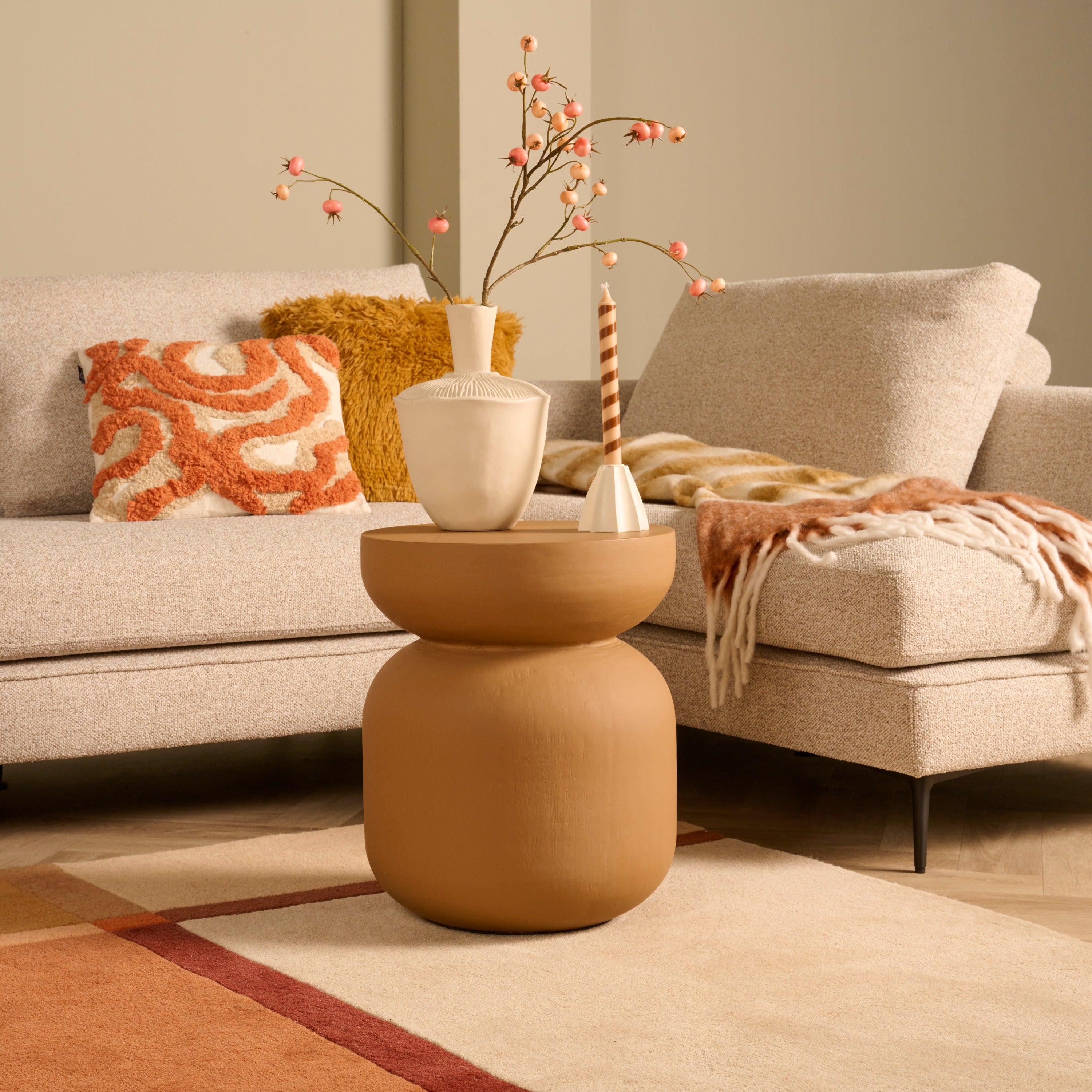Geef je ruimte een stijlvolle en flexibele update met bijzettafel Bregenz. Dankzij het strakke, pure design is deze hippe tafel een subtiele, maar krachtige toevoeging aan elke moderne inrichting. De tafel is vervaardigd uit MDF met een kalkpleister finish, wat de warme aardse bruine kleur een robuuste, gematteerde textuur geeft – een uniek tactiel detail. Bregenz is niet alleen de ideale plek voor je koffie, favoriete boek of een sfeervolle plant; door zijn handzame formaat en lichte gewicht verplaats je hem moeiteloos. Zo zet je deze blikvanger precies dáár neer waar hij op dat moment nodig is, van zithoek tot thuiskantoor. Extra informatie:- afmeting 40x50x40 cm (bxhxd)