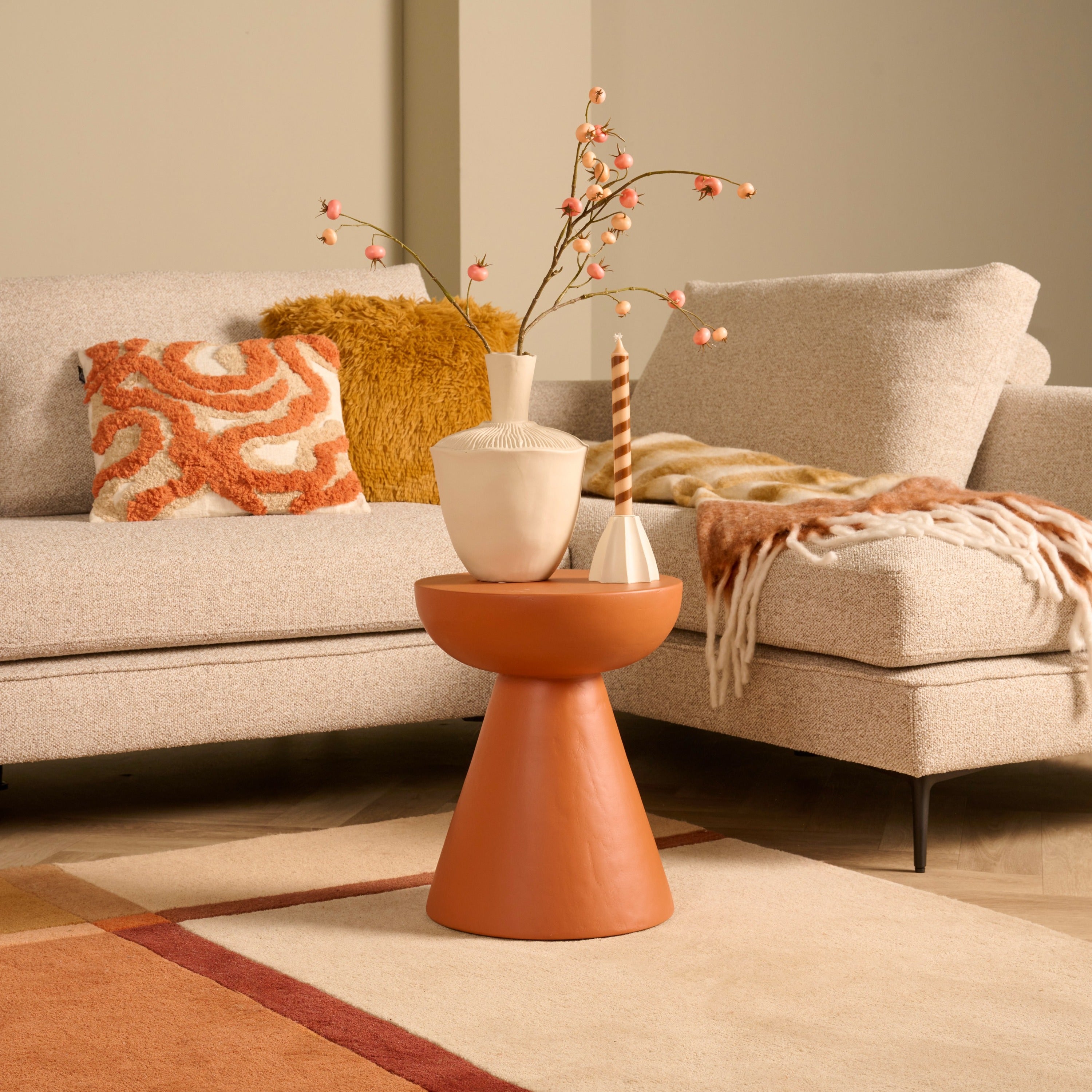 Bijzettafel Graz is een ware eyecatcher die elke ruimte direct opfleurt met zijn moderne elegantie en levendige kleur. De organische vormgeving sluit naadloos aan bij een eigentijds interieur. Vervaardigd uit MDF en afgewerkt met een kalkpleister finish, krijgt de oranje terracotta kleur een prachtig robuust en gematteerd effect. Of je hem nu in de woonkamer, slaapkamer of een thuiskantoor neerzet: bijzettafel Graz voegt overal een unieke en stijlvolle charme toe. Extra informatie:- afmeting 34x43x34 cm (bxhxd)